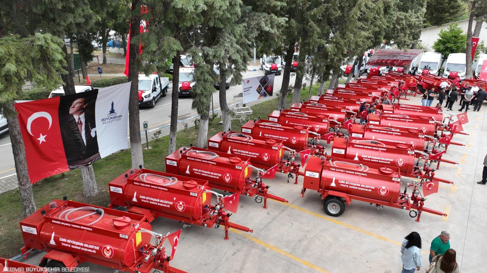 30 milyon liralık yatırımla alınan 125 yangın tankeri ile birlikte İzmir Büyükşehir Belediyesi’nin orman köylerine dağıttığı yangın tankeri sayısı 585’e çıkacak. Yangın tankerleri itfaiye araçları gelene kadar ulaşımın zor olduğu bölgelerde, ormanlık alanlarda yangınların başlangıç aşamasındayken söndürülmesini, büyümesini ve farklı yerlere sıçramasını önlüyor. İtfaiye eğer suya ihtiyaç duyarsa su takviyesi için de kullanılıyor. Alınan yangın tankerleri römork tipi yapıları sayesinde dar ve engebeli alanlarda etkin hizmet verecek. Kentin dağınık ve kırsal bölgelerinde yangınlara hızlı müdahale edilmesini sağlayacak. Yangın tankerleri, çevre dostu özellikleriyle de dikkat çekiyor. Sıvı yangın söndürme maddeleri kullanılarak çevresel zararlar en aza indirgeniyor. 85 yangın tankerinin mayıs sonuna kadar dağıtımı tamamlanacak.