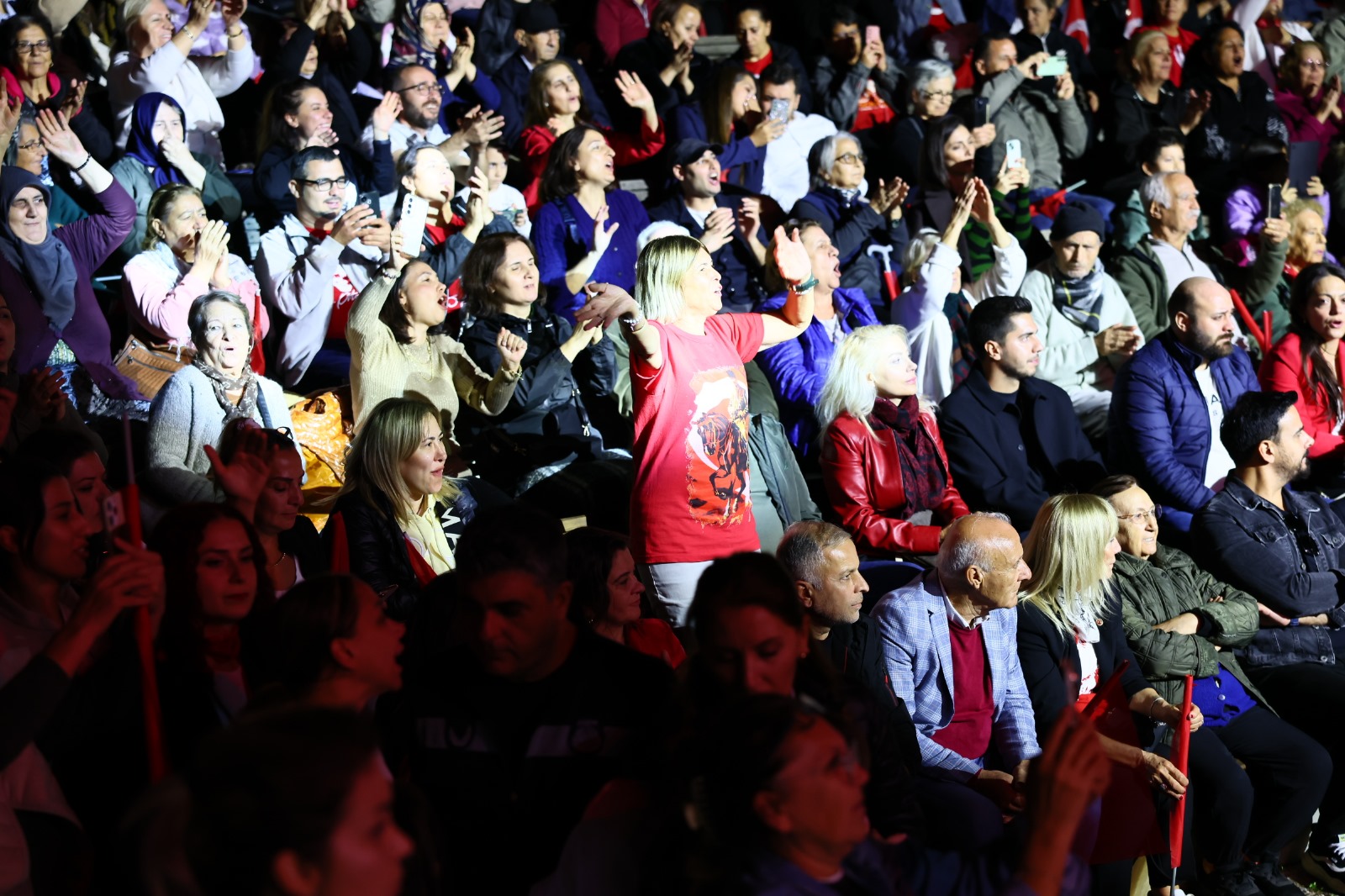 Konser boyunca binlerce Balçovalı, Cem Belevi’nin seslendirdiği şarkılara hep bir ağızdan eşlik etti. Alanı dolduran vatandaşlar, ellerinde bayraklarla marşlar söyleyerek Cumhuriyet’in 102. yılını büyük bir coşkuyla kutladı.