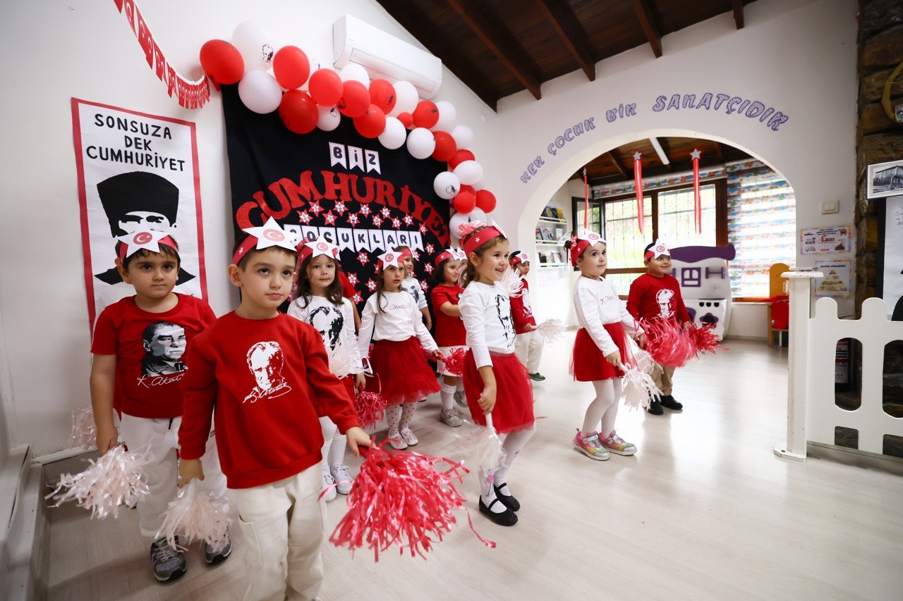 Balçova’da Cumhuriyetimizin 102. yılı etkinlikleri bugün sabah saatlerinde başladı.İlk program Gülfem Benli Anaokulu’nda gerçekleştirildi. Minik öğrenciler, öğretmenleriyle birlikte hazırladıkları şiir, koro ve dans gösterileriyle Cumhuriyet coşkusunu yaşattı. Programa katılan Balçova Belediye Başkanı, “Atatürk’ün izinde büyüyen bu minik yürekler, Cumhuriyetimizin en güçlü teminatıdır” dedi.