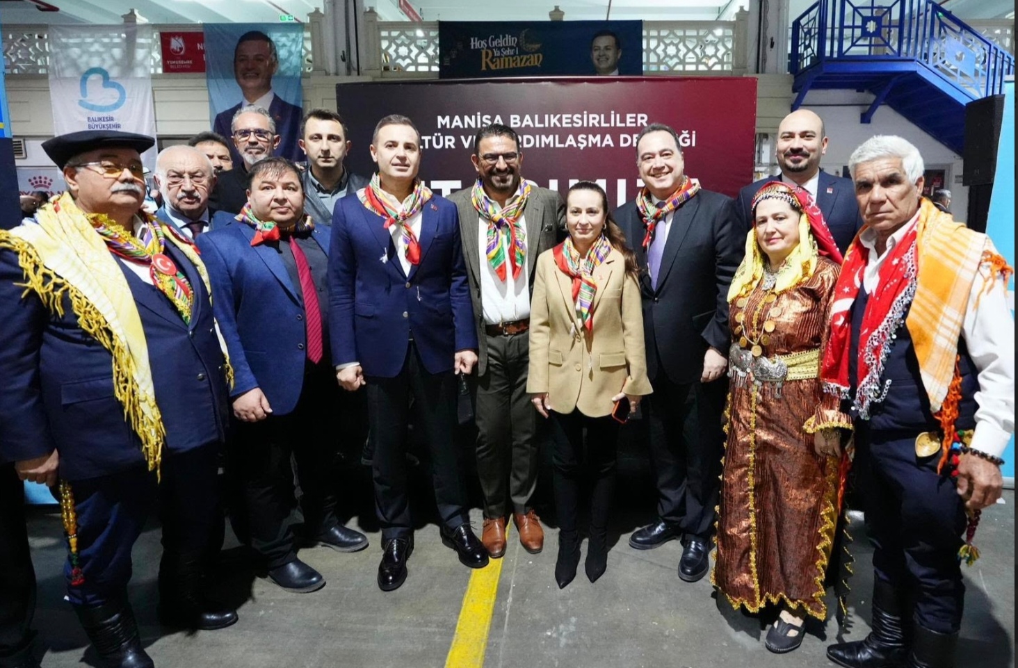 Manisa Balıkesirliler Kültür ve Yardımlaşma Derneği tarafından düzenlenen iftar programı, Ferdi Zeyrek Millet Çarşısı Kapalı Pazaryeri içerisinde yoğun katılımla gerçekleştirildi. Manisa Balıkesirliler Kültür ve Yardımlaşma Derneği Başkanı Mümin Şafak’ın ev sahipliğinde düzenlenen programa; CHP İl Başkanı İlksen Özalper, Manisa Büyükşehir Belediye Başkanı Besim Dutlulu, Balıkesir Büyükşehir Belediye Başkanı Ahmet Akın, Yunusemre Belediye Başkanı Semih Balaban, MASKİ Genel Müdürü Ali Kılıç, CHP Yunusemre İlçe Başkanı Yalçın Arcak, Yunusemre Belediye Başkan Yardımcıları Emine Özge Arslan, Hakan Gürtunca, Mehmet Mesut Doğan, Seyit Ali Özmen ve meclis üyeleri katıldı. Programda katılımcılar aynı sofrada buluşarak Ramazan ayının manevi atmosferini paylaştı. Programda birlik, beraberlik ve dayanışma mesajları verilirken organizasyona katkı sunanlara teşekkür edildi.