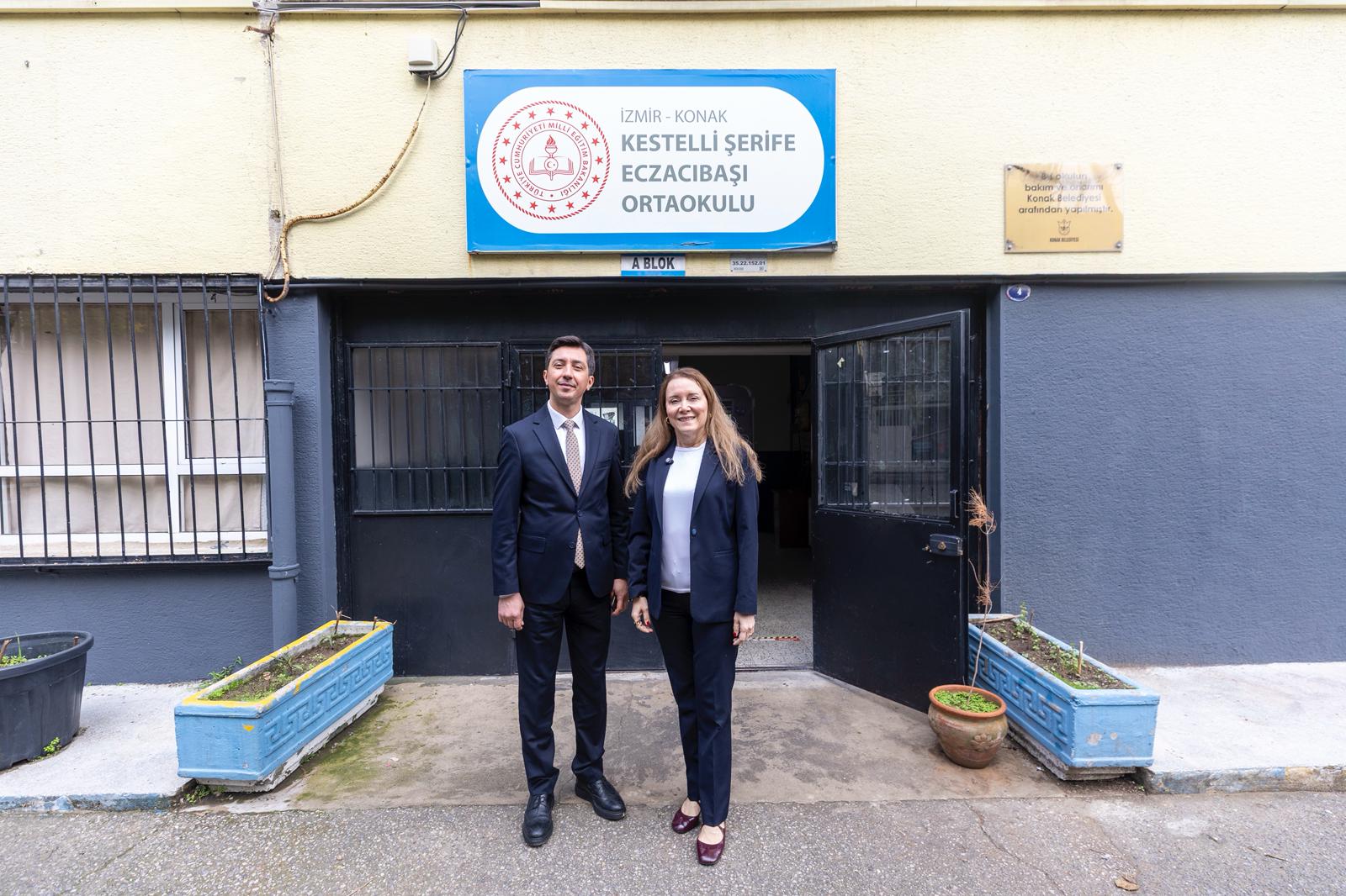 Konak Belediye Başkanı Nilüfer Çınarlı Mutlu, Kestelli Şerife Eczacıbaşı Ortaokulu Müdürü Osman Merze, eğitimciler ve okul öğrencileriyle bir araya geldi. Başkan Mutlu’ya, Namık Kemal Mahalle Muhtarı İbrahim Karabay, Selçuk Mahalle Muhtarı Nurettin Karaaslan, Tınaztepe Mahalle Muhtarı Polat Kabataş, Eşrefpaşalılar Derneği Başkanı Mehmet Yıldız, meclis üyeleri ve belediye bürokratları eşlik etti.