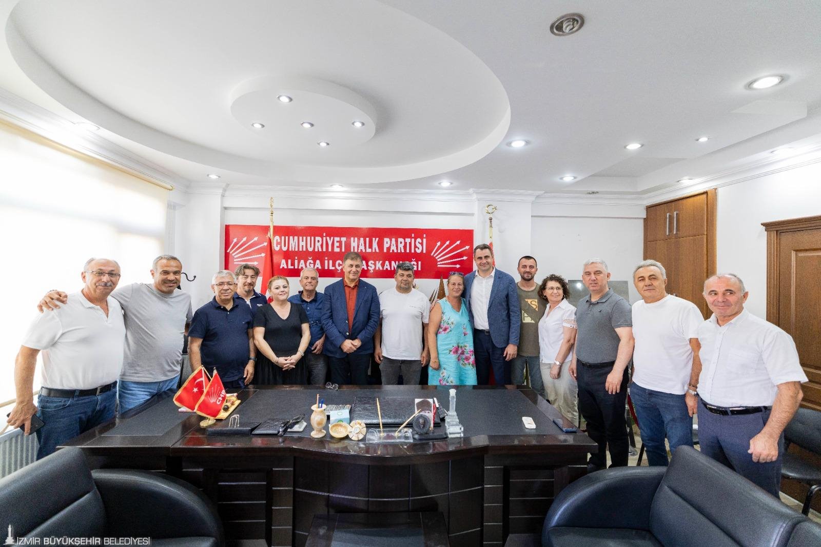 Büyükşehir Belediye Başkanı Tugay Aliağa programı kapsamında Cumhuriyet Halk Partisi (CHP) İlçe Başkanlığı’nı da ziyaret etti. CHP Aliağa İlçe Başkanı Ali Serçe ve yönetim kurulu üyeleri tarafından ağırlanan Başkan Tugay partililerle bir araya gelerek sohbet etti. Başkan Tugay  programını esnafı ziyaret ederek tamamladı.