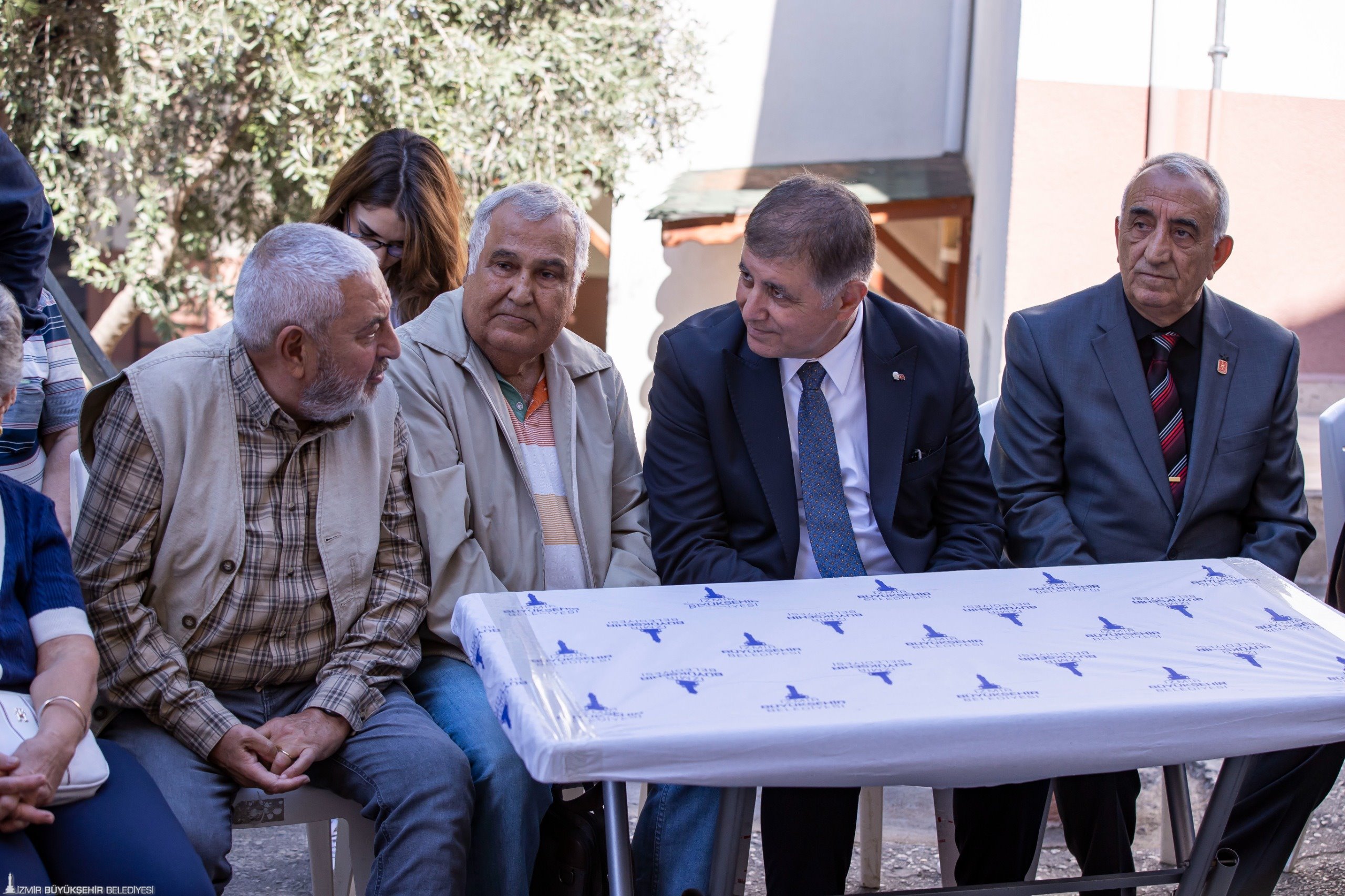 İzmir Büyükşehir Belediye Başkanı Dr. Cemil Tugay, Türkiye Muharip Gaziler Derneği İzmir Şubesi’nde düzenlenen hayır yemeğine katıldı. Türkiye Muharip Gaziler Derneği İzmir Şubesi Başkanı Orhan Aydın, Dernek İkinci Başkanı Adil Tatlı ev sahipliğindeki yemeğe Yörük Ali Efe’nin torunu emekli Vali Kayhan Kavas, İzmir Büyükşehir Belediyesi Genel Sekreter Yardımcısı Çağatay Güç, gaziler, gazi yakınları, şehit ailesi yakınları, İzmir Büyükşehir Belediyesi bürokratları da katıldı. Yemek, dualarla başladı.