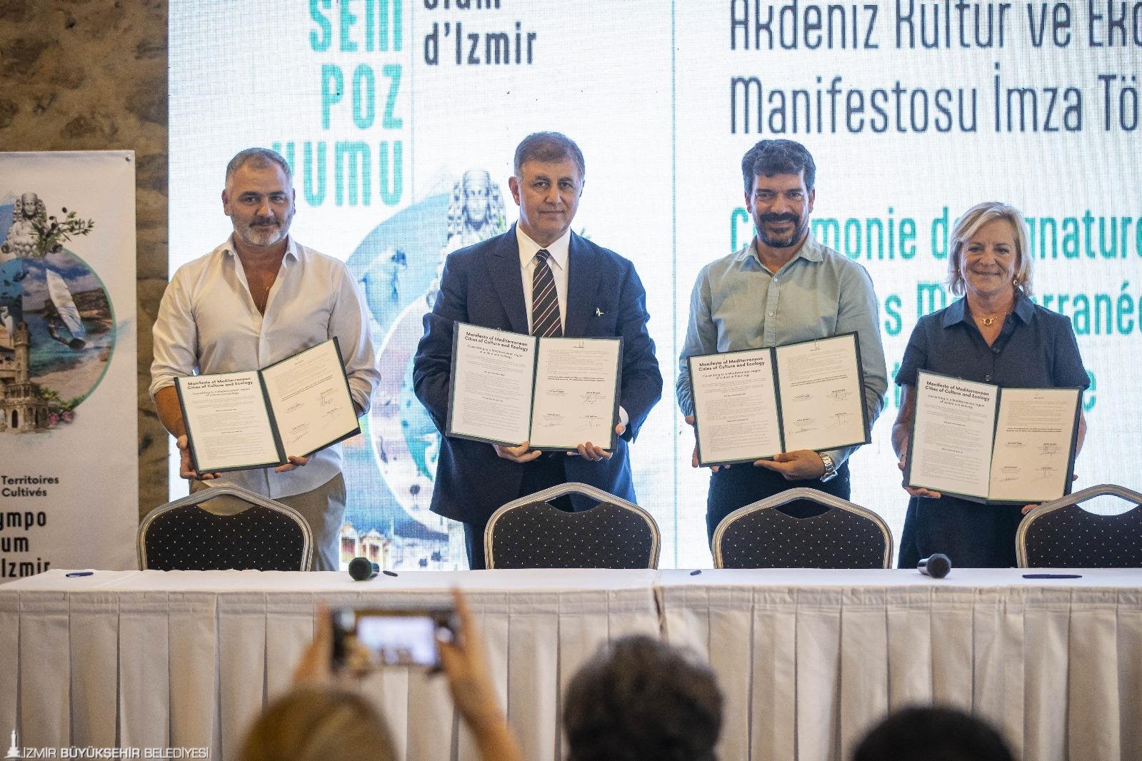 Sürdürülebilir Bir Akdeniz İçin Kültür ve Ekolojik Dönüşüm Uluslararası İzmir Sempozyumu 4-5 Eylül tarihleri arasında, Tarihi Havagazı Fabrikası Kültür Merkezi’nde düzenlendi. Fransa Dışişleri Bakanlığı’na bağlı Avrupa ve Dışişleri Bakanlığı Yerel Yönetimler Dış Eylem Delegasyonu (DAECT) hibesinden yararlanan “Kültürle İşlenmiş Bölgeler / Cultivated Territory” projesi kapsamında düzenlenen sempozyumun sonunda ise İzmir Büyükşehir Belediye Başkanı Dr. Cemil Tugay, Nice Belediye Başkan Yardımcısı ve AVITEM (Sürdürülebilir Akdeniz Kent ve Bölgeleri Ajansı) Başkanı Agnès Rampal, Vitrolles Belediye Başkanı Loïc Gachon ve Korsika Kolektifi Kültür Dairesi’ni temsilen Jean-Jacques Ottaviani ile birlikte Akdeniz Kültür ve Ekoloji Kentleri Manifestosu’nu imzaladı. İmza törenine AVITEM Genel Müdürü Büyükelçi François Xavier Léger, AVITEM Genel Müdür Yardımcısı Marie Baduel, İzmir Fransız Kültür Merkezi Müdürü Juliette Bompoint, Fransa Kültür Etkinlikleri ve İş Birliği Müsteşar Yardımcısı ve Institut Français Türkiye Müdür Yardımcısı Fabien Flori, İzmir Büyükşehir Belediyesi bürokratları, Kültürle İşlenmiş Bölgeler (Territoires Cultivés) projesi partnerleri, şehirlerden gelen uzmanlar ve temsilciler de katıldı.