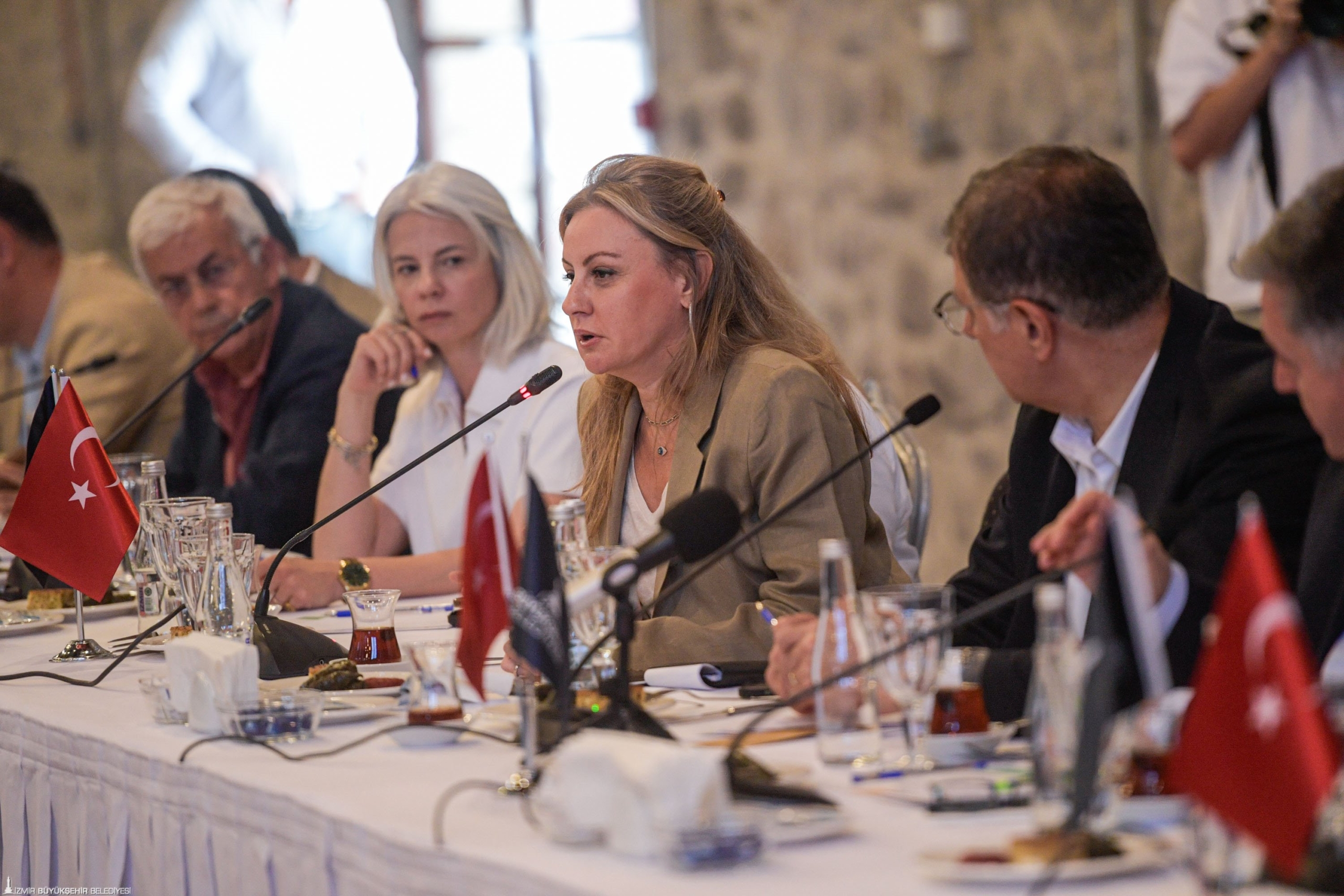 Sektörün birçok paydaşının yer aldığı toplantıda CHP İzmir Milletvekili Seda Kaya Ösen, İzmir İl Kültür ve Turizm Müdürü Dr. Sadık Doğruer, Konak Belediye Başkanı Nilüfer Çınarlı Mutlu, Foça Belediye Başkanı Saniye Bora Fıçı, İzmir Büyükşehir Belediyesi Genel Sekreter Yardımcısı Prof. Dr. Pınar Okyay, İzmir Planlama Ajansı Başkanı Prof. Dr. Koray Velibeyoğlu, İZFAŞ Yönetim Kurulu Üyesi, Genel Müdürü Tuğçe Cumalıoğlu, İZDENİZ Yönetim Kurulu Başkanı Dr. Işıkhan Güler, İZDENİZ Genel Müdürü Gökhan Marim, İzmir Vakfı Genel Müdürü Deniz Karaca, İzmir Ticaret Odası Yönetim Kurulu Üyesi Oğuz Özkardeş ve İzmir Ticaret Odası temsilcileri, İzmir Büyükşehir Belediyesi Kültür ve Sosyal İşler Dairesi Başkanı Yener Ceylan, Turizm Şube Müdürü Melih Kayacık, Fuarcılık ve Turizm Komisyonu Başkanı Seyhan Müşerref Kuralı, ilçe belediyelerin başkan vekilleri, oda, dernek ve sivil toplum kuruluşlarının temsilcileri, turizm derneklerinin başkanları ile temsilcileri, birlik temsilcileri, sektör profesyonelleri, havayolu şirketlerinin ve otellerin temsilcileri de hazır bulundu.