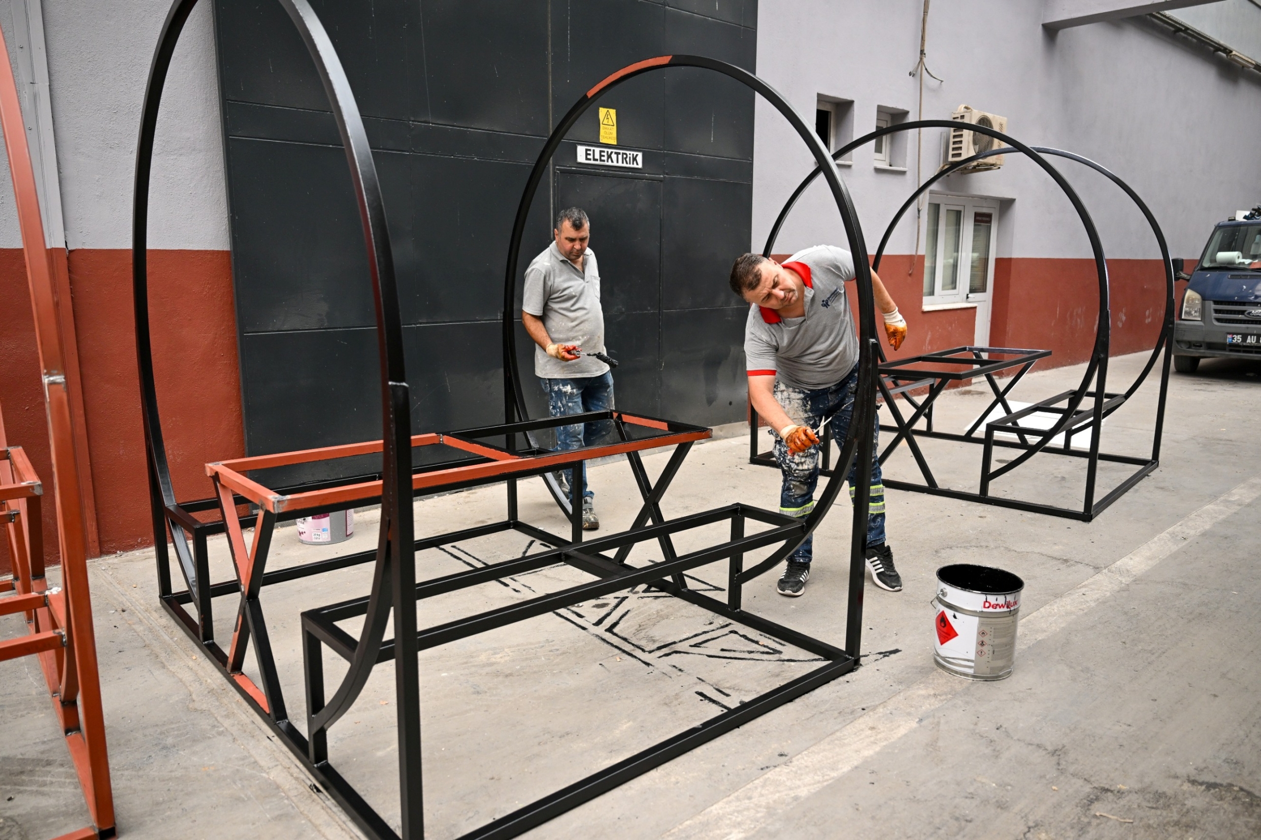 Bornova Belediyesi tarafından tasarlanan karşılıklı oturaklı, üzeri kapalı banklar, ilçenin farklı noktalarındaki parklara yerleştirilmeye hazırlanıyor. Demir iskeletinden ahşap kesimine, montajından cilasına kadar tüm üretim süreci Fen İşleri Şantiyesi’nde titizlikle yürütülüyor. Bornovalıların hem dinlenebileceği hem de sevdikleriyle birlikte vakit geçirebileceği bu yeni banklar, modern tasarımları ve dayanıklı yapılarıyla dikkat çekiyor. Şantiyede usta eller tarafından üretimi süren banklar, belirlenen noktalara monte edildikçe ilçenin çehresine estetik bir dokunuş da kazandıracak.