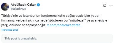 Dolmabahçe A.Ş. bünyesindeki DBL Entertainment için iki gündür “boykot” çağrıları yapılıyor. Şirketin sahibi Abdülkadir Özkan’ın İmamoğlu protestoları ve boykot kampanyasına ilişkin sözleri “boykot” çağrısına gerekçe gösterildi. Özkan’ın, CHP Genel Başkanı Özgür Özel’in Espressolab’i boykot çağrısı için X hesabından “vatan haini” paylaşımı ve tutuklu İBB Başkanı Ekrem İmamoğlu’nun babasını da hedef alması büyük tepki çekti.