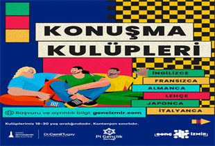 Çiğli Gençlik Merkezi’nde İngilizce, İtalyanca, Fransızca, Lehçe, Almanca konuşma kulüpleri olacak. Bornova Aşık Veysel Gençlik Merkezi, Bornova Macera Parkı Gençlik Merkezi, Alsancak Talatpaşa Gençlik Merkezi, Şato İzmirli Kahve ve Buca Kasaplar Meydanı İzmirli Kahve’de İngilizce Konuşma Kulüpleri düzenlenecek. Kurslar ve konuşma kulüpleri önümüzdeki hafta başlayacak. Başvurular gencizmir.com üzerinden yapılabilecek.