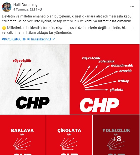 AK Parti İlçe Başkanı Durankuş paylaşımınlarına, “Devletin ve milletin emaneti olan bütçelerin, kişisel çıkarlara alet edilmesi asla kabul edilemez. Belediyecilikte liyakat, hesap verebilirlik ve kamuya hizmet esas olmalıdır.