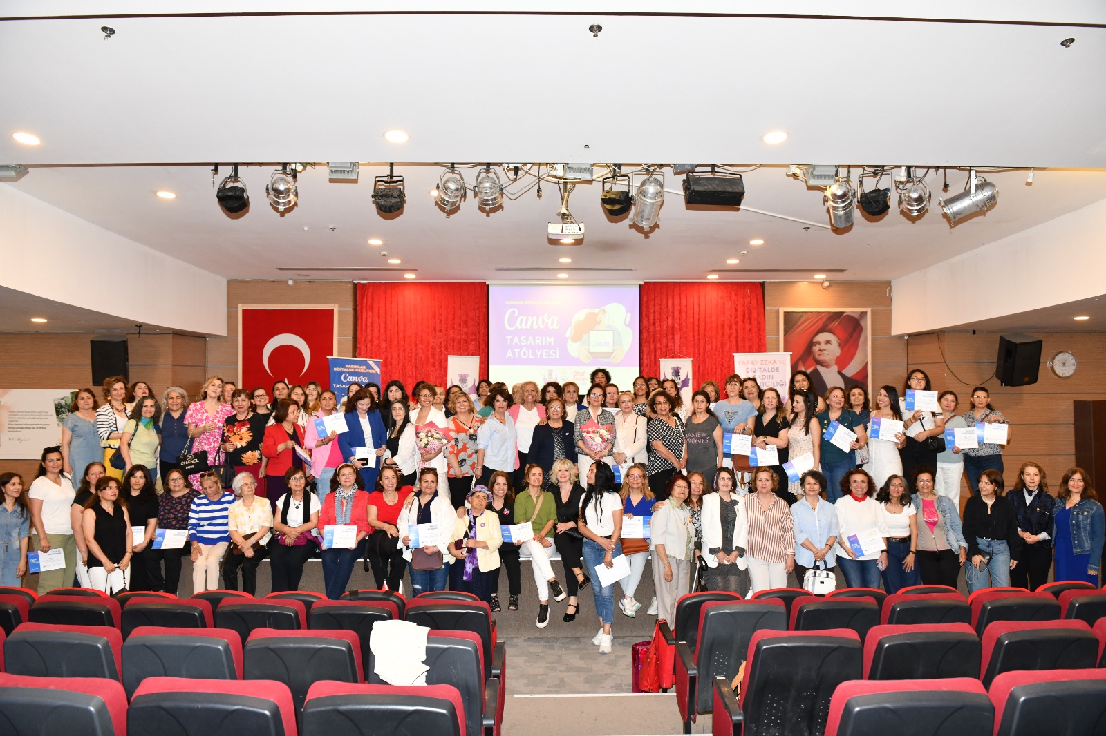 İzmir, Uşak, Aydın ve Muğla’dan kadınların katıldığı eğitim, Prof. Dr. Nermin Abadan Unat Kadın Yaşam Merkezi’nde gerçekleştirildi. Eğitim sürecinde katılımcılara grafik tasarım ve içerik üretimi konularında temel beceriler kazandıran Canva programı öğretildi. Proje, kadınların dijital yetkinliklerini artırarak girişimcilik ve yaratıcılık alanlarında güçlenmelerini amaçladı.