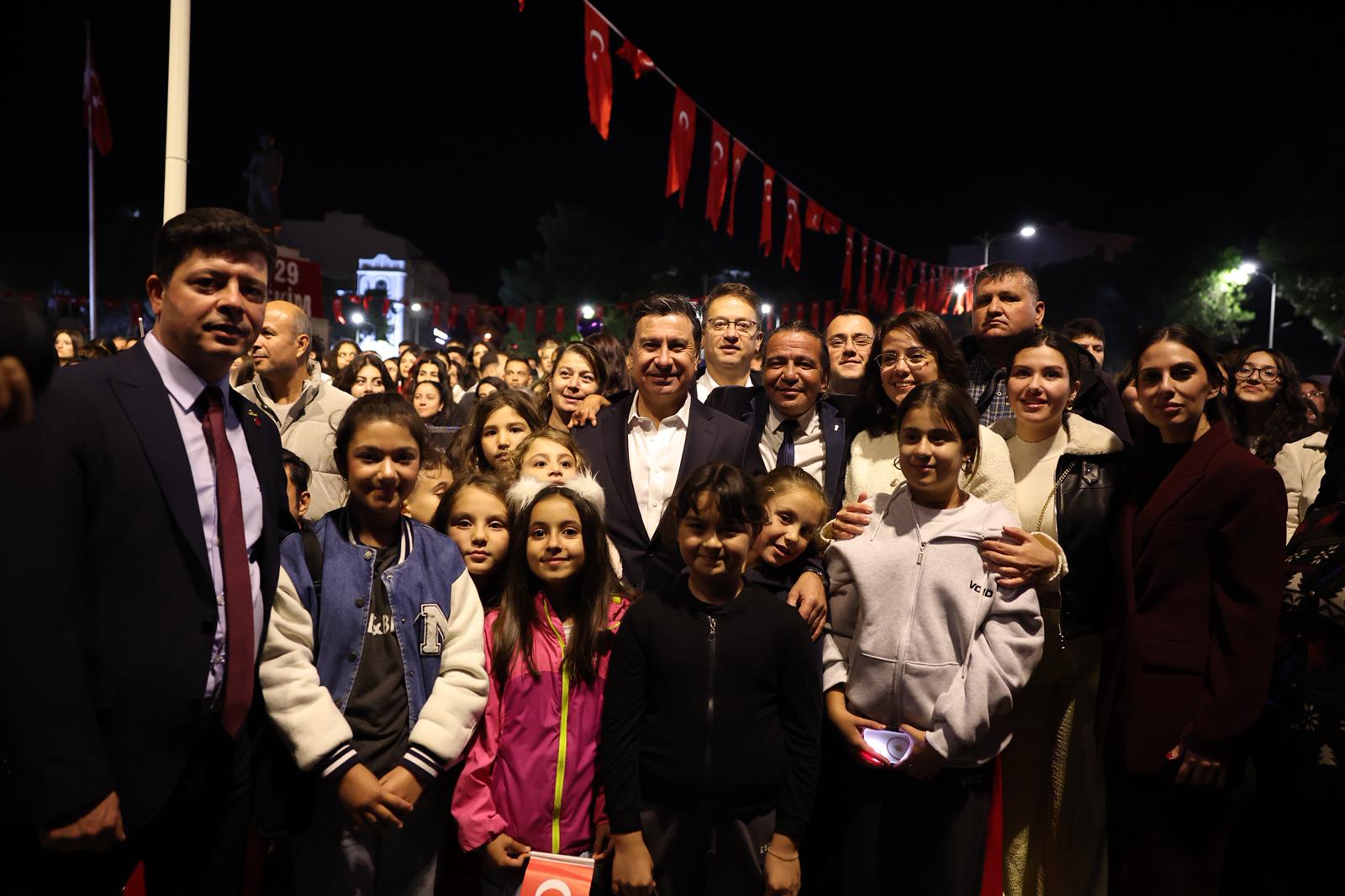 Menteşe’de gerçekleştirilen konserde konuşan Kıyı Ege Belediyeler Birliği ve Muğla Büyükşehir Belediye Başkanı Ahmet Aras, “Atatürk Cumhuriyeti gençlere emanet etti, çünkü gençler gelecek demek. Cumhuriyet ilelebet payidar kalacaktır. Ne mutlu Türk’üm diyene. Yaşasın Cumhuriyet!” sözleriyle coşkuyu paylaştı.