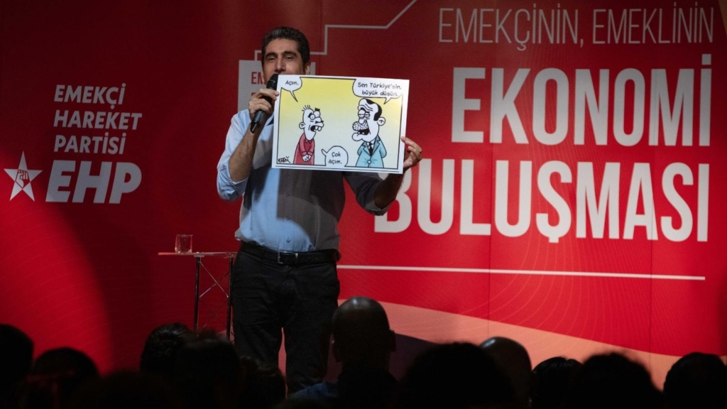 Emekçi Hareket Partisi Genel Başkanı Hakan Öztürk Emekçinin, Emeklinin Ekonomi Buluşması’nda iktidarın hortumlamasından kaybedilen milyar dolarlara karşı, kamu tasarrufunun ekonominin krizine çözüm olamayacağı sözleriyle mevcut durumu anlattı;