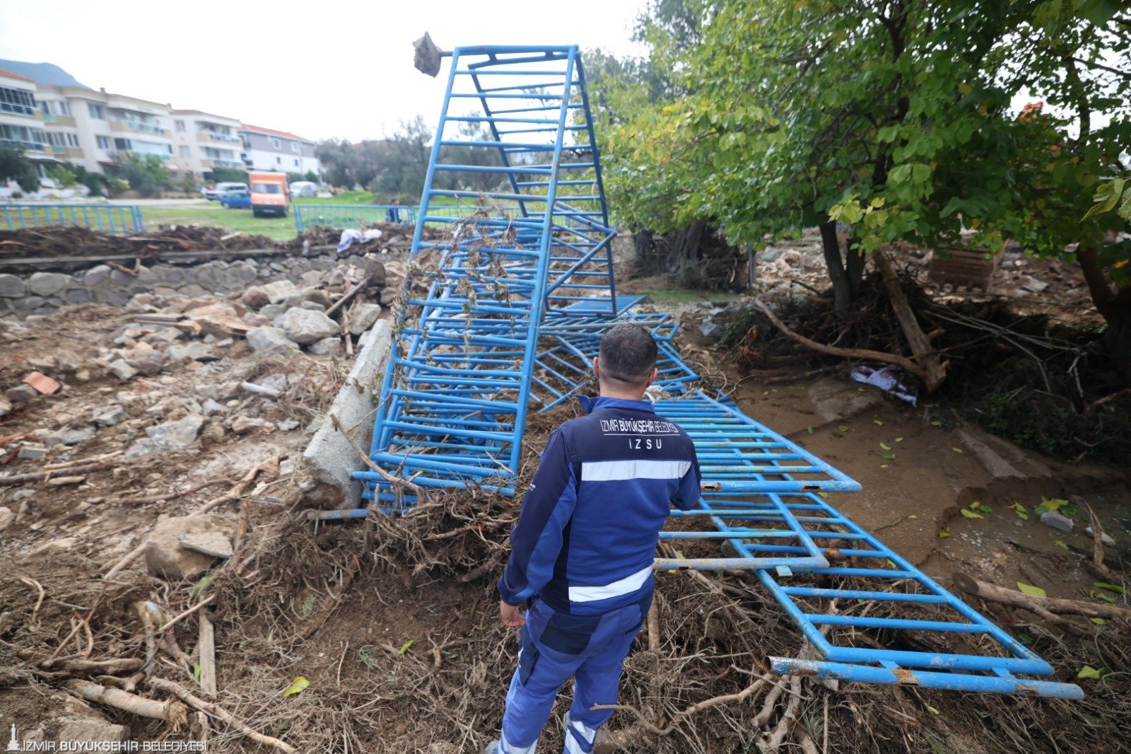 İzmir Büyükşehir Belediyesi, İZSU Genel Müdürlüğü, İzmir İtfaiyesi ve Foça Belediyesi ekipleri su baskınlarının yarattığı olumsuzlukları ortadan kaldırmak, konutlar ve işyerlerindeki suları tahliye etmek ve ilçede genel temizlik çalışmaları kapsamında faaliyetlerine kesintisiz devam ediyor. Dağlık kesimlerden selle birlikte sürüklenerek dere yataklarını tıkayan ağaç dalları ve kaya parçalarının temizlenmesi için de yoğun çaba harcanıyor. Dağlardan taşınan toprakla tıkanan ızgaraların açılması için yoğun bir çalışma yürütülüyor. Ayrıca suyun şiddeti nedeniyle zarar gören dere yataklarının onarılması için İZSU ekipleri çalışmalara başladı.