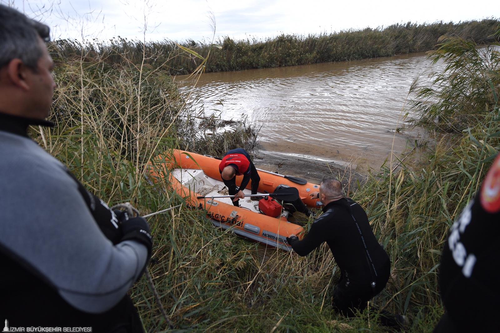 İzmir’in Foça ilçesi tarihinin en şiddetlerine yağışlarından birine sahne oldu. Sadece birkaç saat içinde metrekareye 155 kg yağış düşen ilçede deniz seviyesinin yükselmesiyle birçok bölgede su baskınları meydana gelirken, ekipler taşkınlara müdahale etti. Yağış sırasında 70 yaşındaki Bülent Kaptanoğlu’nun otomobili sel sularına kapıldı. Kurtarma çalışmaları kapsamında ekiplerin ulaştığı otomobilin içinde olmadığı tespit edilen Kaptanoğlu’nu arama çalışmaları tüm bölgeye yayıldı. İzmir Büyükşehir Belediyesi İtfaiye Dairesi Başkanlığı, AFAD, Jandarma, Sahil Güvenlik ve Komando ekipleri, İzmir Emniyet Müdürlüğü Deniz Limanı Şube Müdürlüğü’ne bağlı kurbağa adam ekibi, 707 personel, 43 dalgıç ve 5 dron ile dere yatağı ve çevresindeki sazlık alanlarda arama kurtarma çalışmalarını aralıksız sürdürüyor. Yaklaşık 14 kilometrelik hatta titizlikle yürütülen çalışmalar, zorlu arazi koşullarına rağmen devam ediyor.