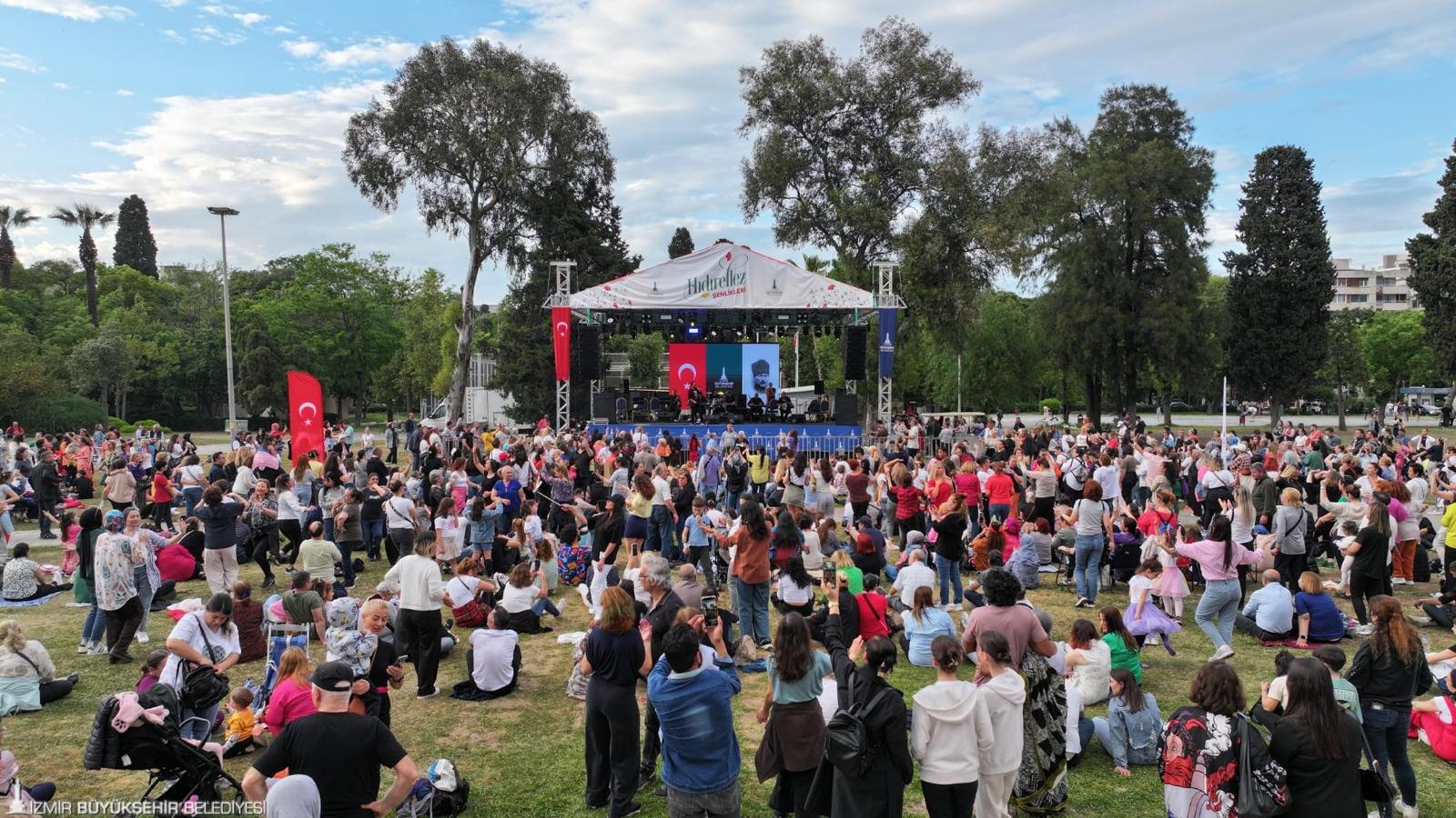 İzmir Büyükşehir Belediyesi, baharın müjdecisi Hıdırellez’i Kültürpark’ta büyük bir coşkuyla kutladı. Hıdırellez programı için Kültürpark’a gelen İzmirliler, önce Lozan Kapısı’nda İzmir Müzisyenler ve Sahne Sanatçıları Derneği’nin konseriyle karşılandı. Kaskatlı Havuz’da ise İzmir Sahne Çalışanları Derneği 65 Yaş Roman Müzisyenler performanslarını sergiledi.