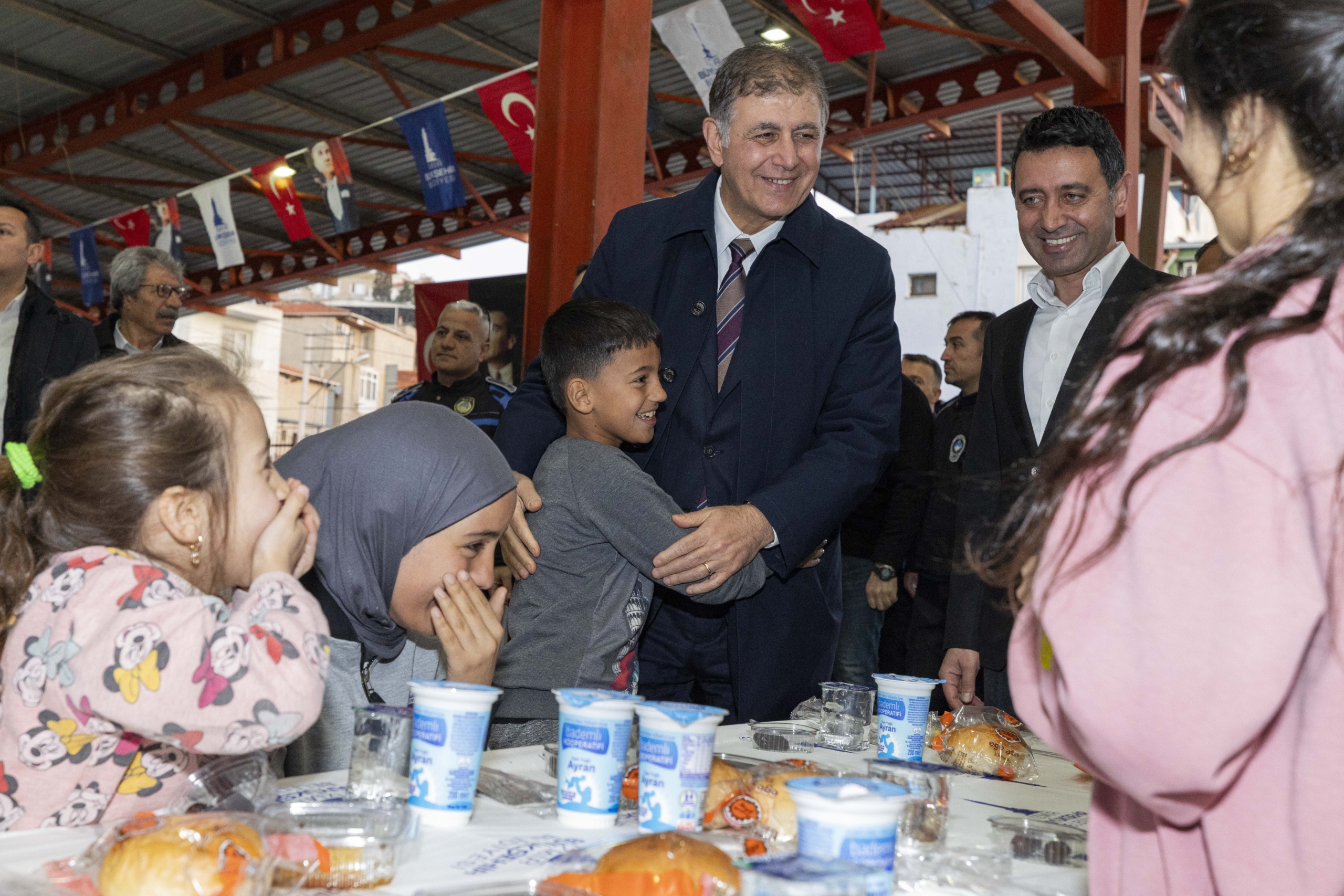 İzmir Büyükşehir Belediye Başkanı Dr. Cemil Tugay, ramazan ayının paylaşma ve dayanışma ruhuna dikkat çekerek, “Ramazan, birlik ve beraberliğimizi güçlendiren, sofralarımızı ve kalplerimizi büyüten çok özel bir zaman. İzmir’de hiçbir yurttaşımızın kendini yalnız hissetmemesi için tüm imkânlarımızı seferber ediyoruz. Dayanışmayı büyüten, paylaşmayı çoğaltan bir İzmir için çalışmaya devam edeceğiz” dedi.