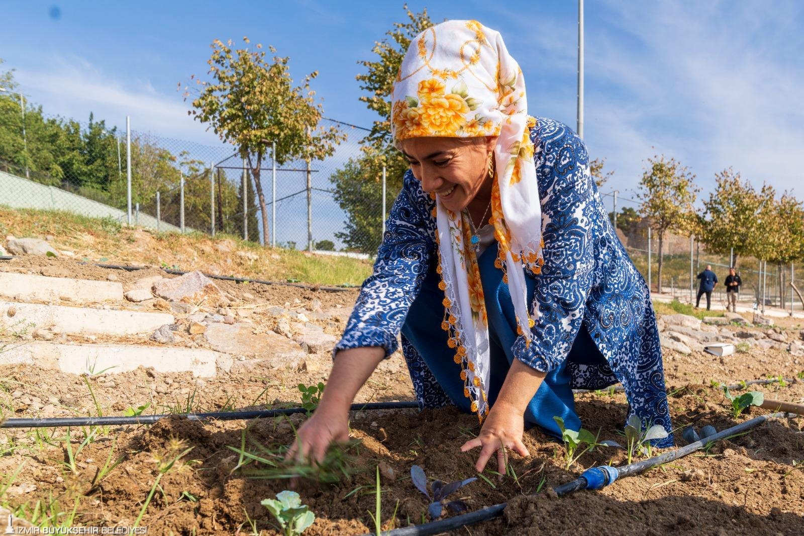 Kadifekale Mahalle Bostanı: Toprağın, kadınların ve çocukların dayanışma hikayesi” başlıklı söyleşide Kadifekale Mahalle Bostanı’nın temellerinin, bölgedeki saha çalışmalarında kadınlardan gelen taleplerle atıldığını belirten Elif Gökçen, “Kadınlar, ‘Toprağa dokunmak istiyoruz, ama yerimiz yok’ dediğinde, her şeyin başlangıç cümlesi kurulmuş oldu. Kadın ve Aile Hizmetleri Dairesi ile Tarımsal Hizmetler Dairesi’nin iş birliğiyle 2022 yılında kurulan ilk bostan, bugün Bornova Meriç ve Buca Mustafa Kemal mahallelerinde oluşturulan yeni alanlarla birlikte büyümeye devam ediyor. Kadifekale’de 96 kadın, 96 parselde üretim yaparken kent genelinde yaklaşık 150 kadın düzenli olarak üretim sürecine katılıyor” dedi.