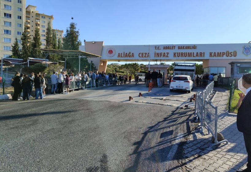 Aliağa-Şakran Cezaevi Yerleşkesi’ndeki mahkeme öncesinde yoğun güvenlik önlemlerinin olduğu görüldü.