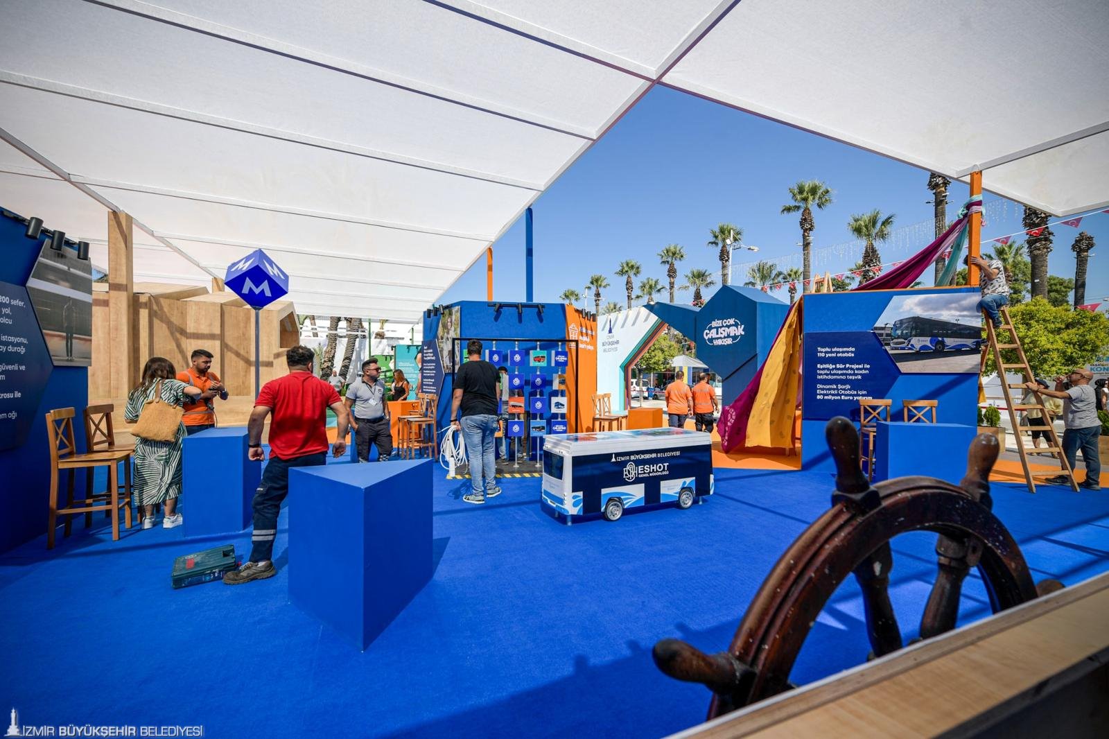 94. İzmir Enternasyonal Fuarı (İEF) kapsamında hazırlanan İzmir Büyükşehir Belediyesi Sokağı, dikkat çeken renkli tasarımı ve işlevsel tematik alanlarıyla ziyaretçilerini bekliyor. İzmir Büyükşehir Belediyesi’nin altı temel hizmet başlığı altında yürüttüğü çalışmaların aktarılacağı alanda, keyifli etkinlikler de yapılacak. Belediye Sokağı, fuarın en çok ilgi çeken duraklarından biri olacak.