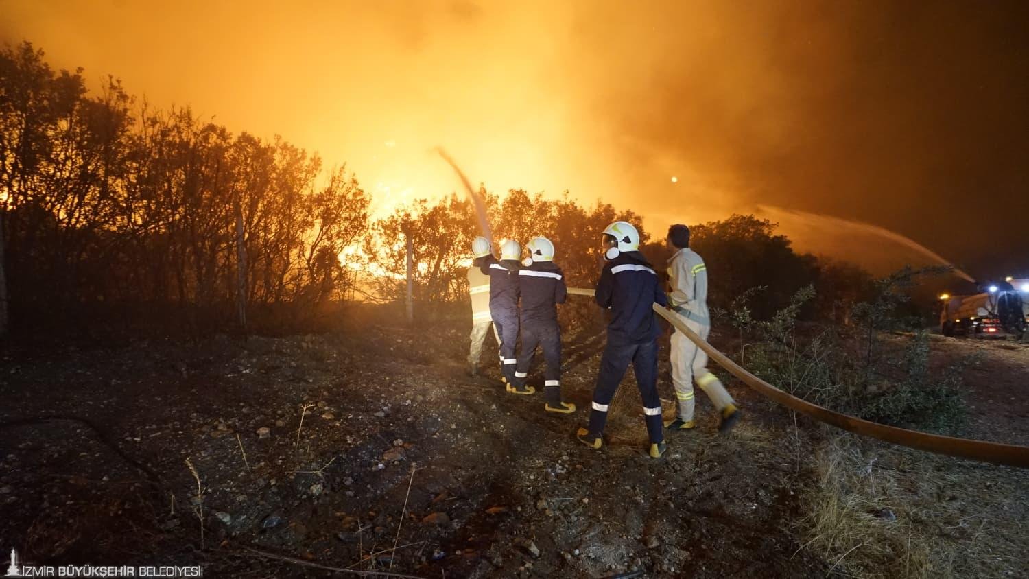 İzmir Büyükşehir Belediyesi İtfaiye Dairesi Başkanı Yaşar Korkmaz, Buca’da bir araçta başlayarak kuru otlara ve ormana sıçrayan yangına ekiplerin hemen müdahale ettiğini belirterek, “Dün geceden beri İzmir’in farklı yerlerinde yangınlar çıktı. Ekiplerimiz yine çok ciddi yangınlarla mücadele ediyor. Buca’da araç yangını olarak başlayan ardından otluk alana ve ormana sıçrayan alevler, kısa süre büyüdü. Kuvvetli rüzgarın etkisi ile yangın çok hızlı şekilde dağlık bölgelere doğru ilerledi. Dağlık bölgelerin alt kısımlarında ise yerlerim yerleri vardı. Buraları yangına karşı koruduk. Büyük bir hasar yok. Yangın tepelik alanı aştıktan sonra Gaziemir’deki Ulaştırma Okulu’na kadar geldi. Burada tüm önlemlerimizi aldık. Alevlerin askeri bölgeyi etkilememesi için ekiplerimiz çalışmalarını sürdürüyor. Amacımız herhangi bir yerleşim yerinin zarar görmeden yangınların kontrol altına alınmasını sağlamak. En tehlikeli durum rüzgar. Rüzgarın hızı çalışmaları olumsuz şekilde etkiliyor” dedi.