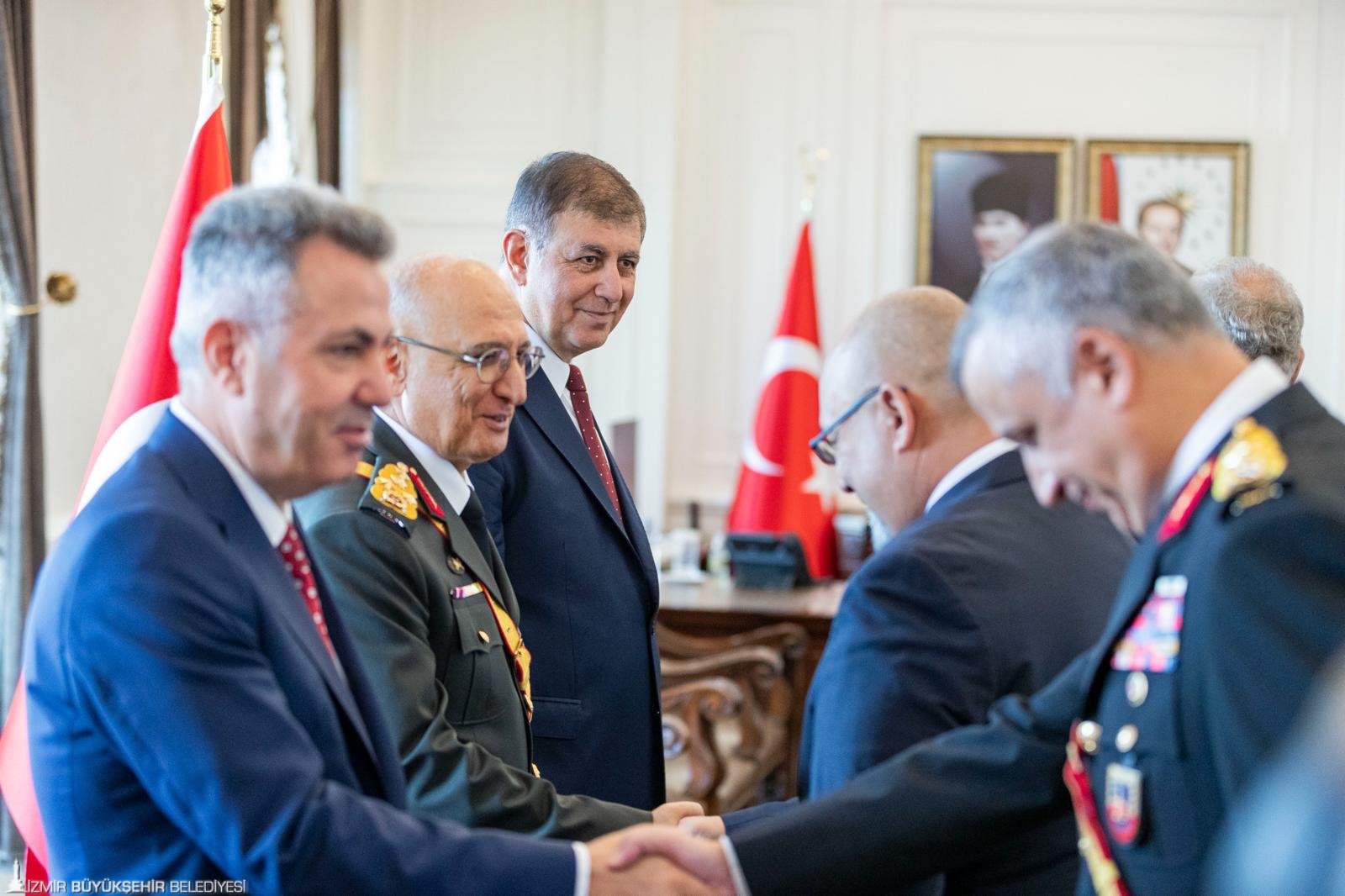 İzmir Büyükşehir Belediye Başkanı Dr. Cemil Tugay, 30 Ağustos Zafer Bayramı kutlamaları kapsamında, İzmir Valiliği’nde düzenlenen tebrikat törenine de katıldı. Başkan Dr. Cemil Tugay, İzmir Valisi Dr. Süleyman Elban, Ege Ordusu Garnizon Komutanı Orgeneral İrfan Özsert ile tebrikleri kabul etti.