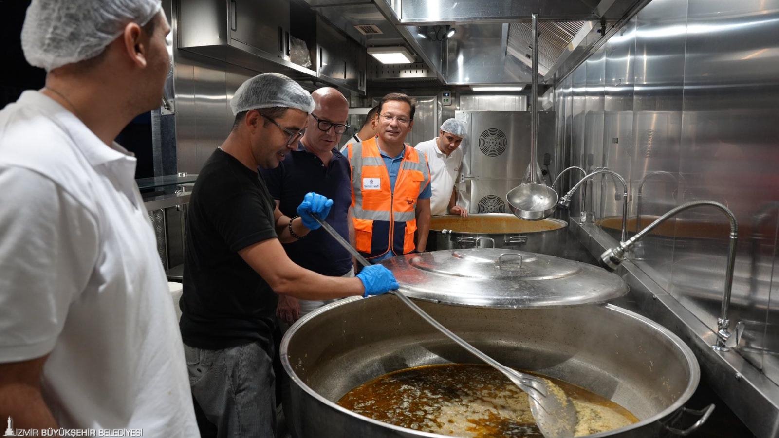 İzmir Büyükşehir Belediyesi Sosyal Hizmetler Dairesi Başkanlığı Aşevleri Şube Müdürlüğü’nde aşçı olarak görev yapan Mehmet Orhan, “Bir nebze de olsa vatandaşlarımızın yaralarını sarmaya geldik. Sabah öğle akşam olmak üzere günlük 6 bin kişilik yemek üretimini ve dağıtımını yapıyoruz. Depremden zarar gören vatandaşlarımıza geçmiş olsun. Biz varız, her zaman yanınızdayız” dedi.