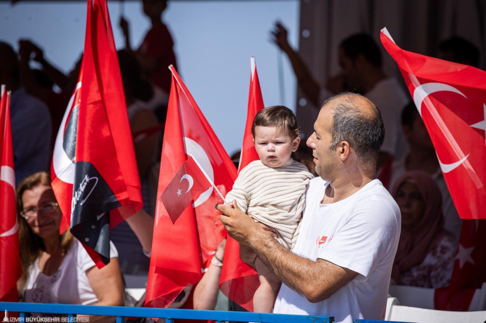 30 Ağustos Zafer Bayramı kutlamaları Cumhuriyet Meydanı’ndaki törenle devam etti. Törene katılan İzmir Büyükşehir Belediye Başkanı Dr. Cemil Tugay, Ege Ordusu ve Garnizon Komutanı Orgeneral İrfan Özsert, İzmir Valisi Dr. Süleyman Elban yurttaşların bayramını kutladı. Türk bayrakları ile alanı dolduran İzmirliler, bayram coşkusuna ortak oldu. Törende İstiklal Marşı’nın okunmasının ardından Cumhurbaşkanı Recep Tayyip Erdoğan’ın mesajı paylaşıldı.
