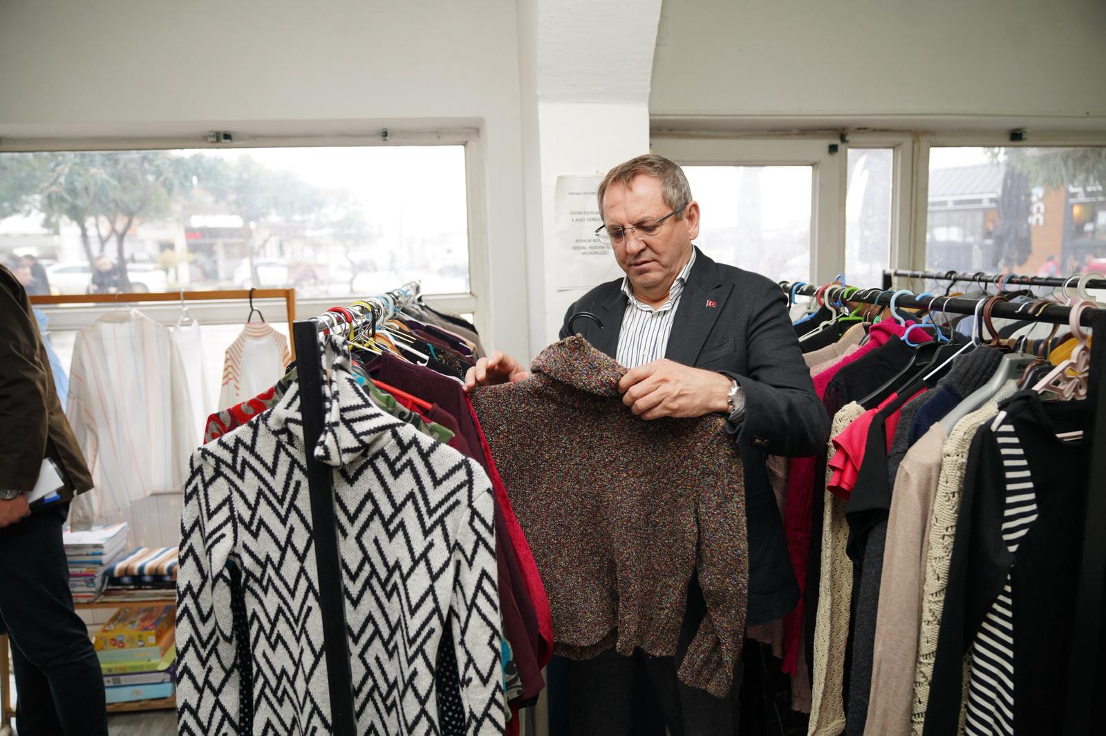 Ayvalık Belediye Başkanı Mesut Ergin, ayakkabıdan kadın, erkek ve çocuk kıyafetlerine; kazaktan monta kadar geniş bir ürün yelpazesinin bulunduğunu belirterek, Sosyal Market’in bir mağaza titizliğiyle hizmet verdiğini vurguladı.