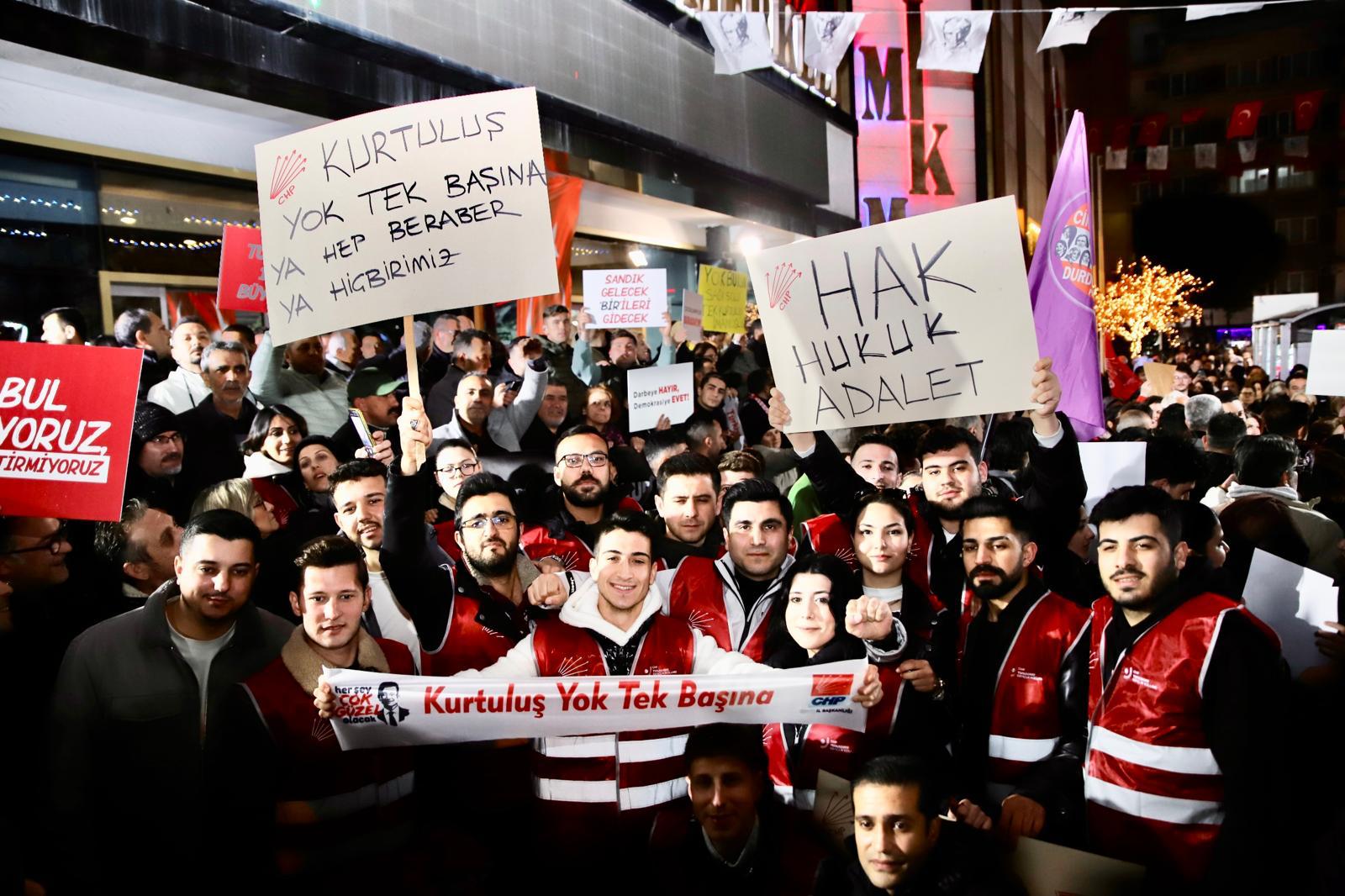 Cumhuriyet Halk Partisi (CHP) Manisa İl Başkanlığı tarafından gözaltına alınan İstanbul Büyükşehir Belediye Başkanı ve CHP Cumhurbaşkanlığı Ön Seçim adayı Ekrem İmamoğlu’na destek amacıyla coşkulu bir demokrasi yürüyüşü düzenledi. Kültür Sitesi önünden başlayan yürüyüş, 15 Temmuz Demokrasi Meydanı’nda sona erdi.