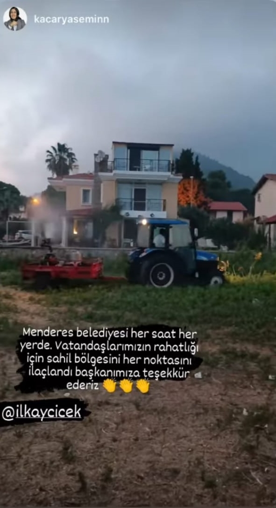 Öte yandan Menderes Belediyesi çalışmalarına tam gaz devam ediyor. Vatandaşların bu sıcaklarda bahçe ve balkonlarına rahatça çıkabilmesi için ilaçlama çalışmaları devam ediyor. Menderes Kemalpaşa Mahallesinde yaşayan bir vatandaş, ilaçlama çalışmalarına ilişkin , “Menderes Belediyesi her saat her yerde. Vatandaşlarımızın rahatlığı için sahil bölgesinin her yeri ilaçlandı. Başkanımıza teşekkür ederiz” dedi.