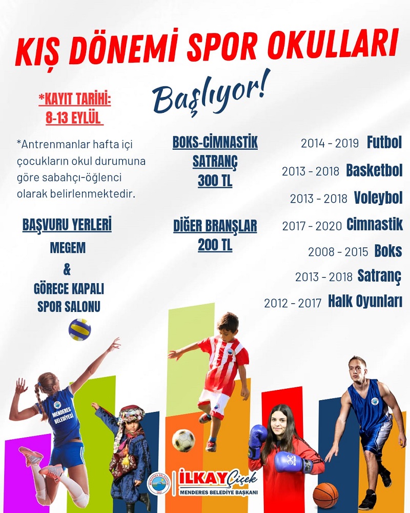 Menderes Belediyesi’nin kış dönemi spor okulları yakında başlıyor. Çocuklarını