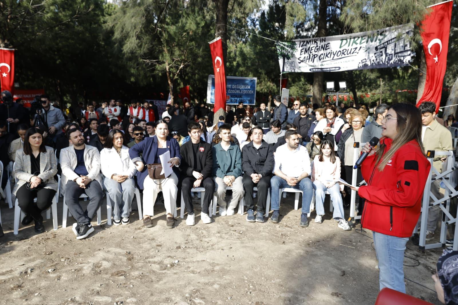 CHP İl Gençlik Kolları Başkanı Ruhsar Selis Çelik, “ Mülkiyeti İzmir Büyükşehir Belediye Başkanlığı’na ait olan Meslek Fabrikası binasına sabah 5’te şafak operasyonuyla el konmuştur.  İzmir halkının malı iktidar eliyle gasp edilmiştir. Biz gençler hukukun herkese eşit uygulandığı adaletin tecelli ettiği bir Türkiye istiyoruz. Burası insanların eğitim aldığım meslek edindiği bir binaydı. Daha da önemlisi Gazi Mustafa Kemal Atatürk’ün mirasıydı. Bu sadece mülkiyet meselesi değil, İzmir’e hukuka sahip çıkmaktır. Gençlik haksızlık karşısında her zaman sesini yükseltir” dedi.