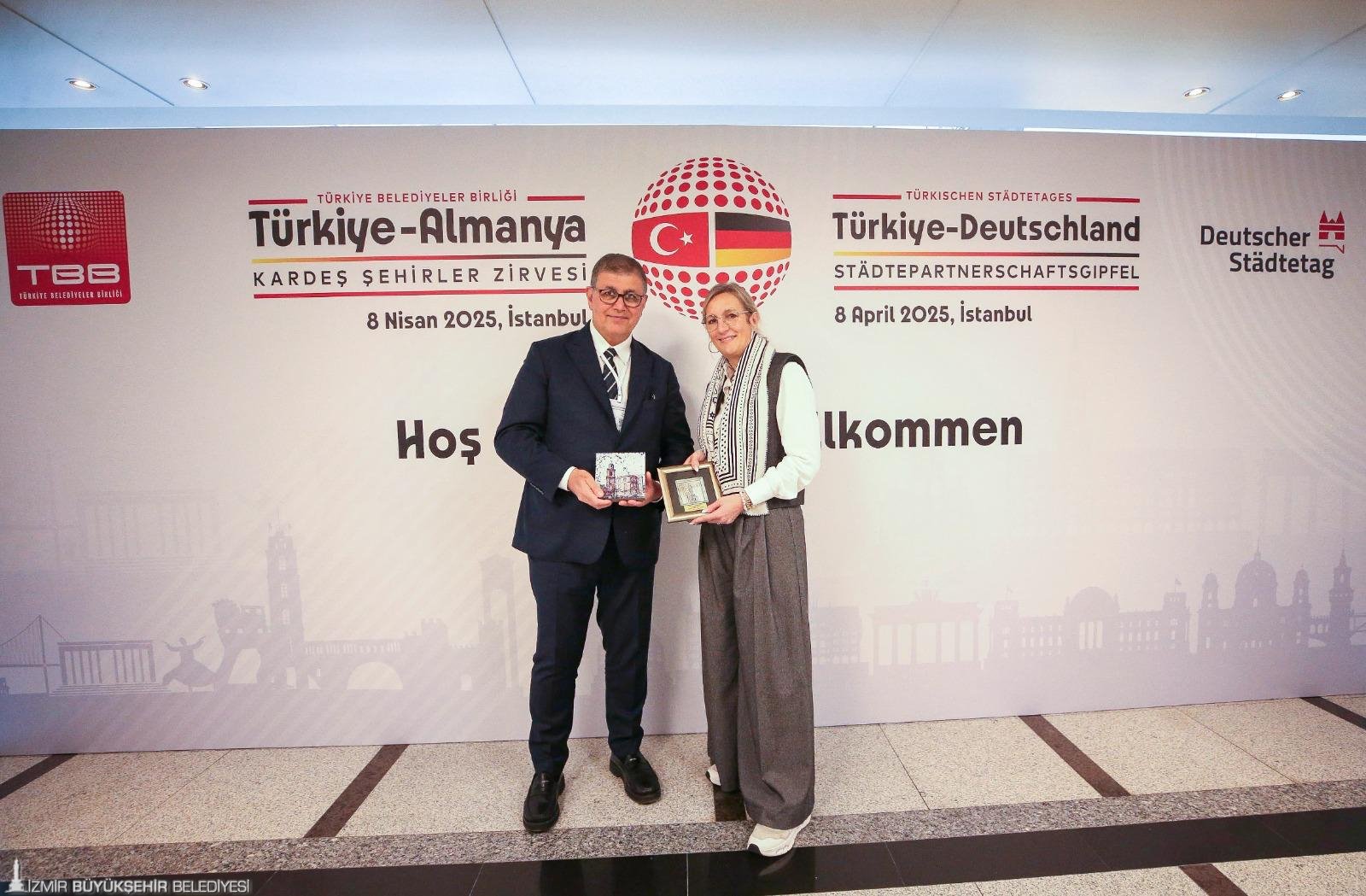 İzmir Büyükşehir Belediye Başkanı Dr. Cemil Tugay, Türkiye Belediyeler Birliği (TBB) ve Alman Belediyeler Birliği iş birliğiyle yapılan Türkiye-Almanya Kardeş Şehirler Zirvesi’nde ortak bildiriye imza attı. Bildiride ortak demokratik değerlerin savunulması gerektiği ve İstanbul Büyükşehir Belediye Başkanı Ekrem İmamoğlu’na destek öne çıktı.