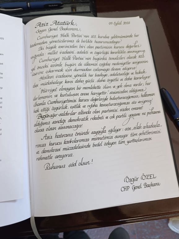 Deftere yazdığını daha sonra okuyan Özel, şunları kaydetti: