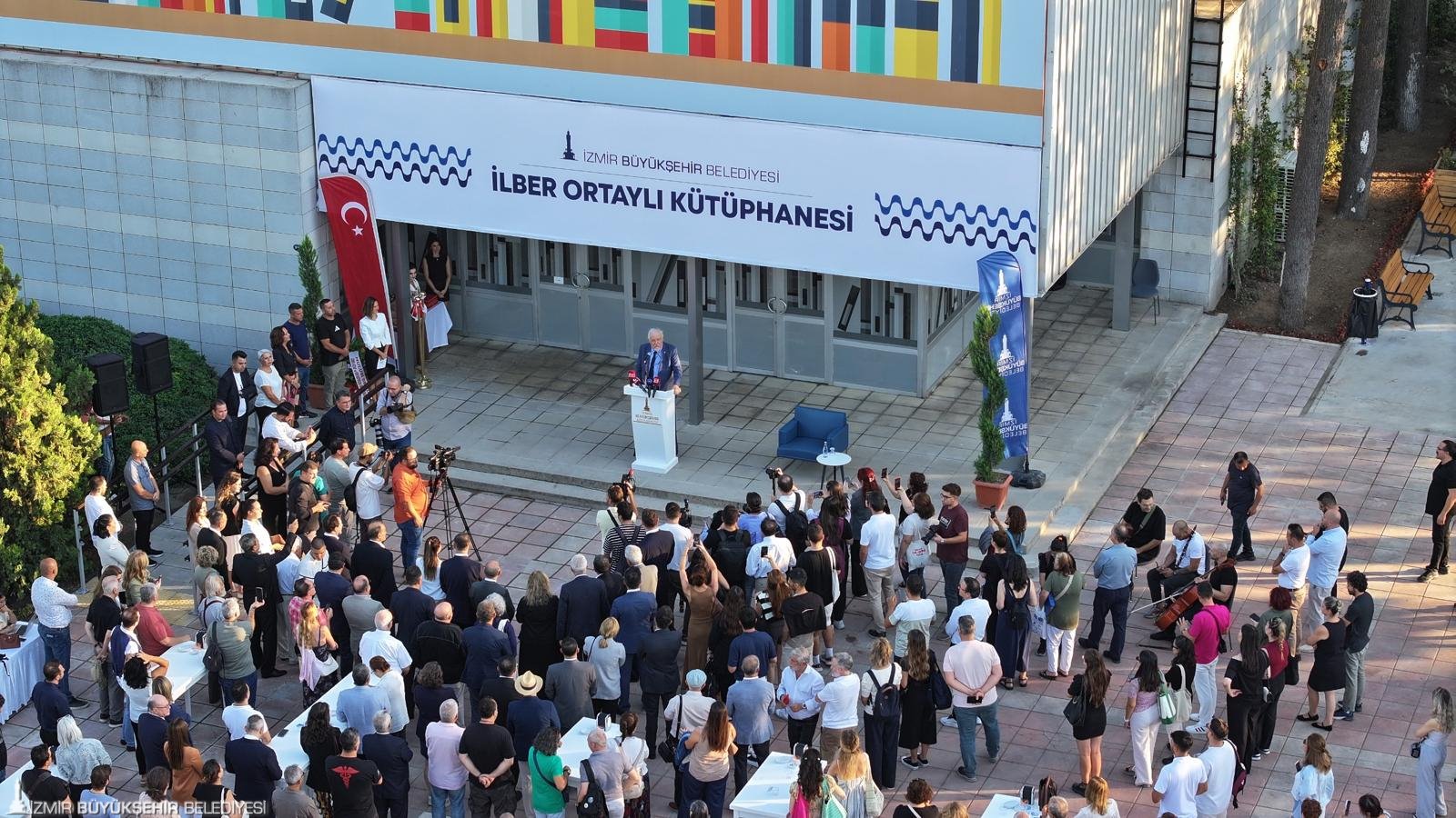 Açılış töreninde konuşan Prof. Dr. İlber Ortaylı da kütüphaneye isminin verilmesinden dolayı çok mutlu olduğunu dile getirdi. İzmirli olmasa da 1963 yılının eylül ayında bir dönem İzmir’de bulunduğunu ve o dönem İzmir’ine dair gözlemlerini anlattı. Ortaylı, “Burada herkes birbiriyle kolay diyalog kuruyordu. Giyim kuşam farklıydı ama kütüphane yoktu. Kemeraltı’nda bir kitabevi vardı. Zamanla okuma gelişti. Bugün kütüphaneler açılıyor. O yıllarda burada gezerken adımla bir kütüphane açılacağını söyleseler ‘Kafayı yiyorum herhalde, doktora gideyim’ derdim. Kabiliyetli milletin bazı şeylerden mahrum yaşaması hoş değil. Onu inşallah telafi edeceğiz. Bu millet kütüphaneleri hak ediyor” dedi.