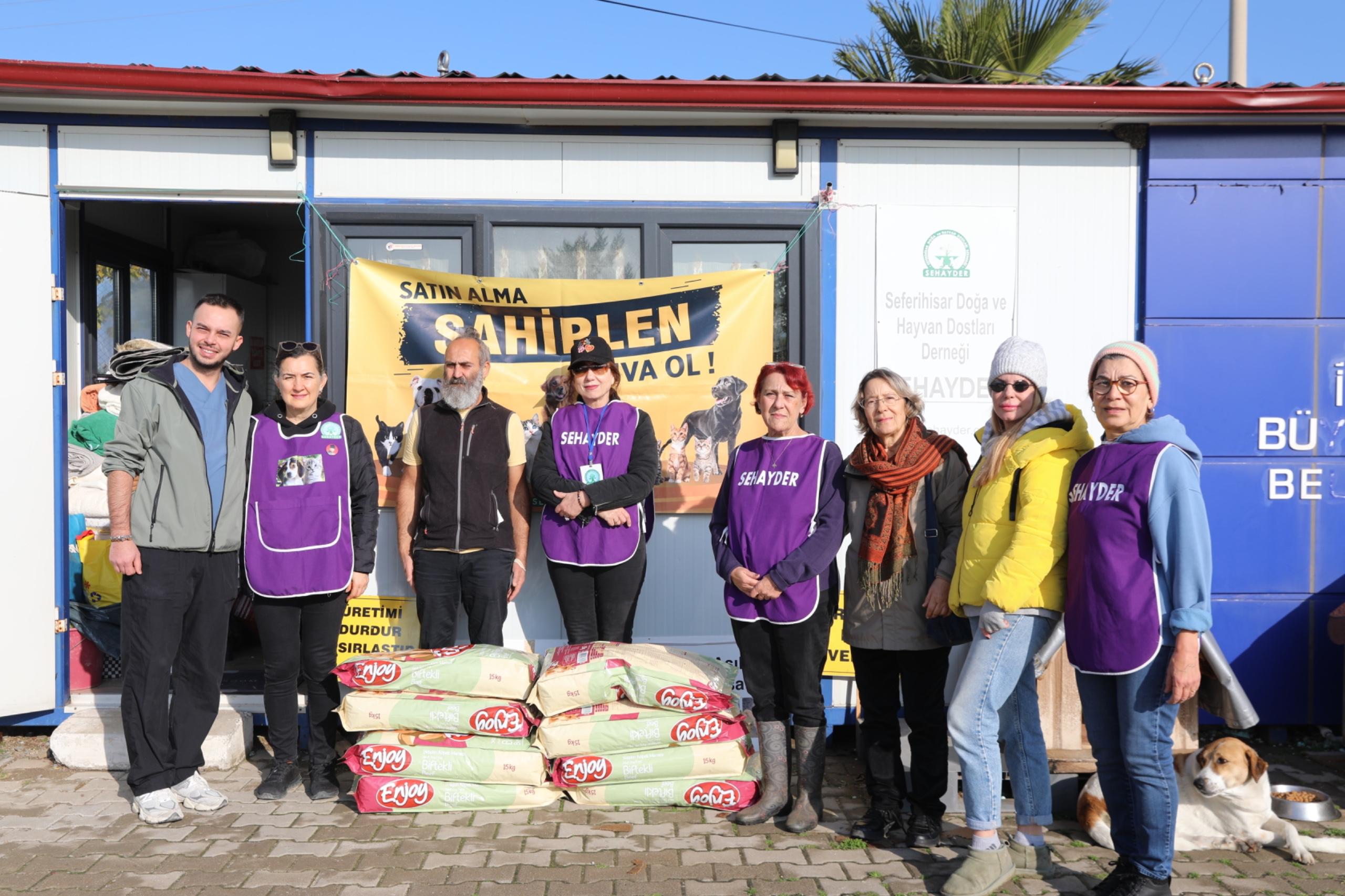 Kampanyaya destek veren Seferihisar Belediye Başkanı İsmail Yetişkin, 10 adet kulübe bağışlayarak barınağı ziyaret etti.