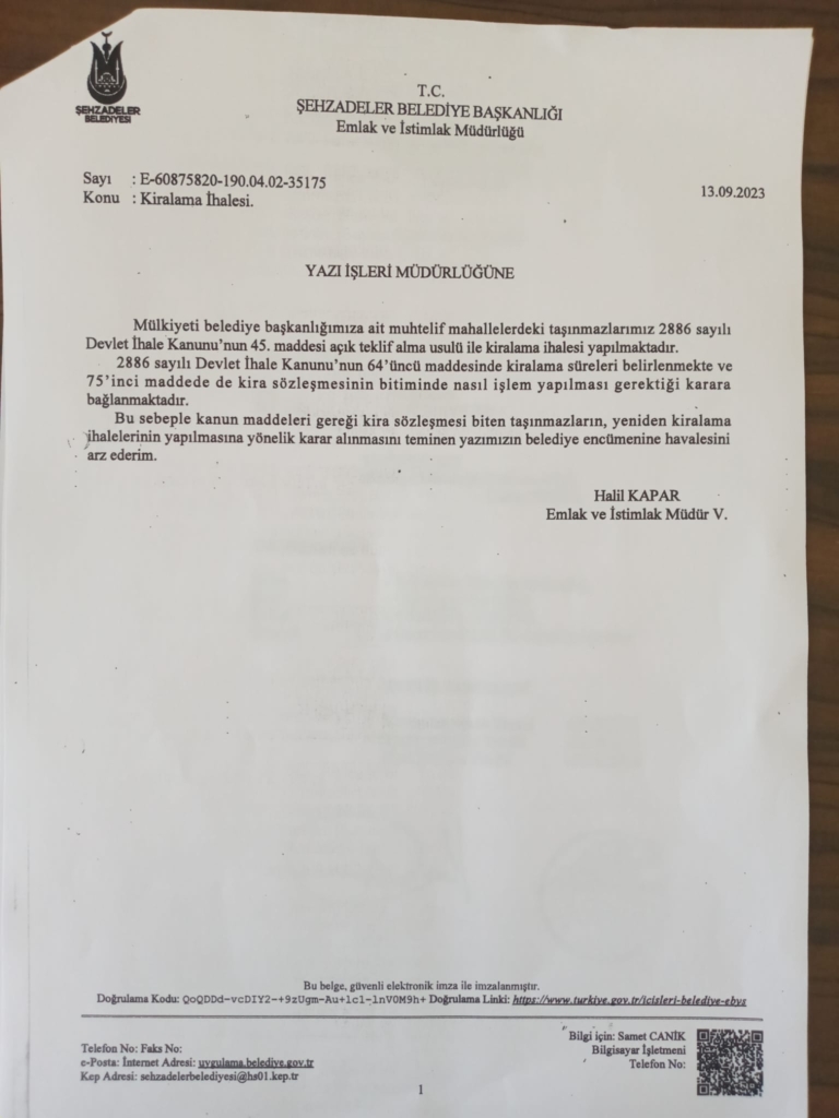 bitecek olan belediyenin taşınmazlarındaki kiracılara, yapılacak olan ihale ile