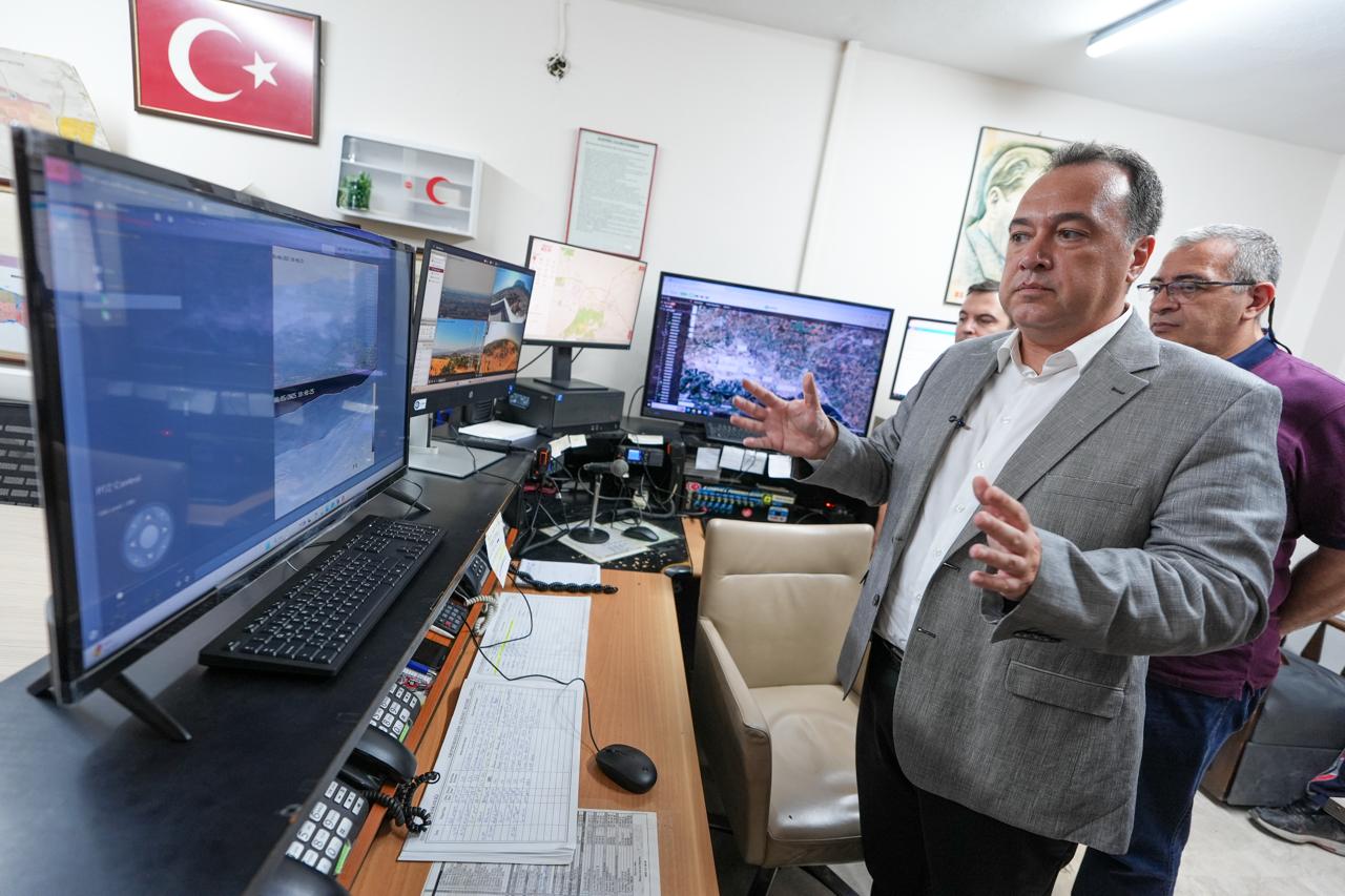 Manisa Büyükşehir Belediye Başkanı Besim Dutlulu, içeriği ile alanında Türkiye’de öncü projelerden bir tanesi olan ‘Yangın Erken Uyarı ve İzleme Sistemi’ni, İtfaiye ekipleriyle birlikte inceledi. Genel Sekreter Yardımcısı Oğuz Murat Pınar, İtfaiye Dairesi Başkanı Gürhan İnal, Bilgi İşlem Dairesi Başkanı Ata Temiz, İtfaiye ve Bilgi İşlem Dairesi ekiplerinden bilgiler alan Başkan Besim Dutlulu, projenin işleyişi, teknik altyapısı ve yangınlara karşı sağlayacağı erken müdahale avantajları hakkında detaylı bilgi aldı.
