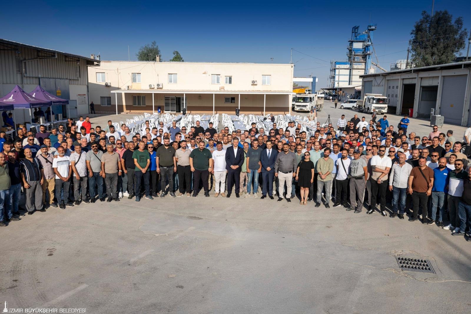 İzmir Büyükşehir Belediye Başkanı Dr. Cemil Tugay, cuma günü sabahın ilk saatlerinde Fen İşleri Dairesi Başkanlığı’nın Bornova’da bulunan şantiyesinde işçilerle kahvaltıda buluştu. Kilit parke, taş, kaynak ustaları, vinç operatörleri gibi yaklaşık 400 personel işe başlamadan önce Başkan Tugay’la bir araya gelerek, yaptıkları çalışmalar hakkında bilgi verdi. İzmir Büyükşehir Belediyesi Fen İşleri Dairesi Başkanı Selahattin Mamikoğlu ile sendika temsilcilerinin karşıladığı Başkan Tugay, “Sizlerle bu ortamda olmak, aynı sofrayı paylaşmak bana büyük gurur ve mutluluk verdi. Sizlere minnettarız” dedi.