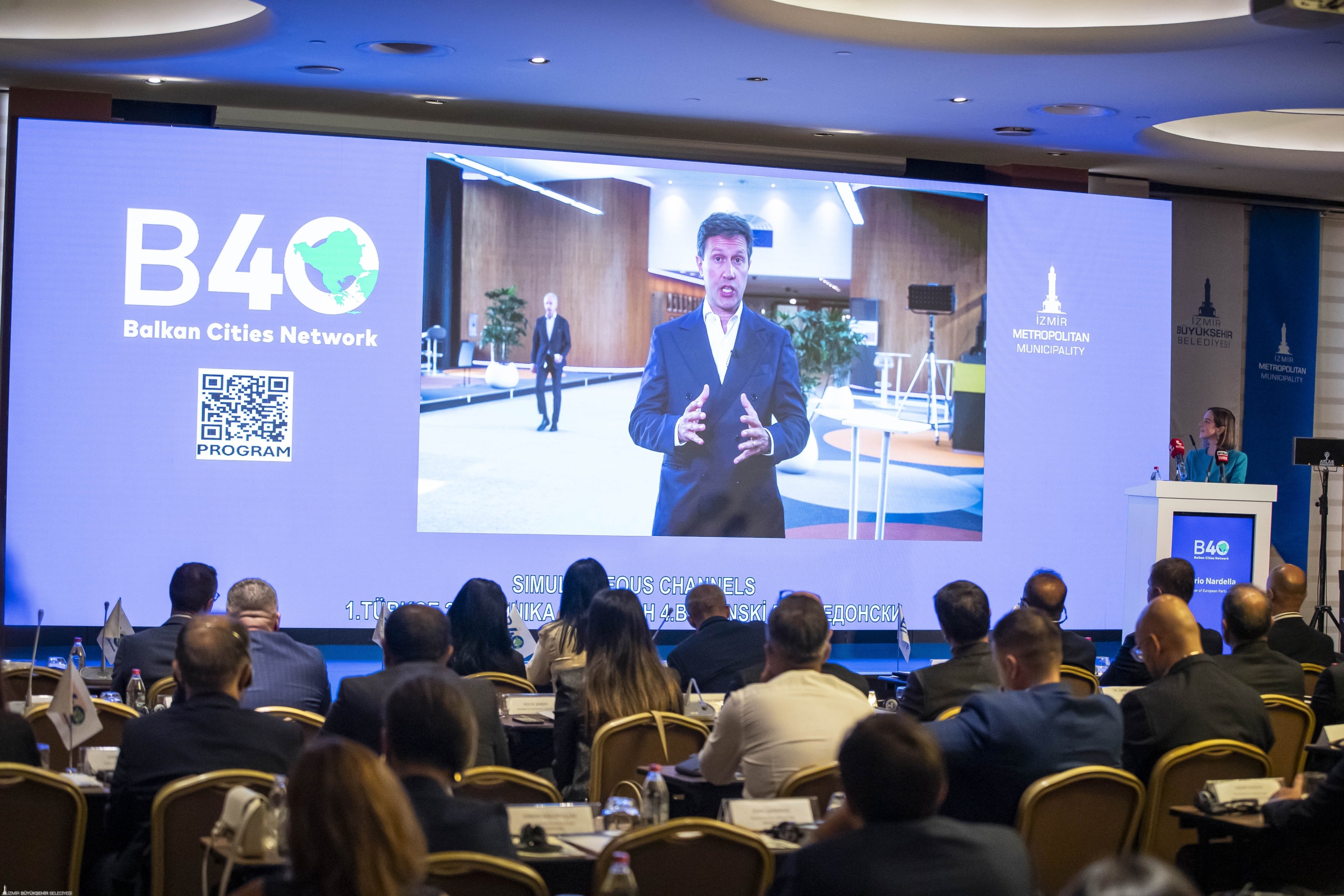 İzmir Büyükşehir Belediye Başkanı Dr. Cemil Tugay, “Ekrem İmamoğlu’nun eksikliğinin hepimiz farkındayız. Kendisi B40’ın kurulmasını sağlamıştır. Bugün biz hala onun ruhunu taşımaktayız. Çok kritik bir dönemden geçiyoruz. Burada dayanışma sadece bir değer değil, bir gerekliliktir. Şehirler birlikte hareket ettiğinde umut verebilirler, ayrımcılığın önüne geçebilirler. B40 Balkan Şehirleri Ağı, İstanbul’da kurulduğunda daha iyi bir gelecek, iş birliği mottosuyla kuruldu. Amaç; yerel demokrasi, sürdürülebilir kalkınma, iklim ve kültürel iş birliğidir. Burada güçlü bir felsefe var. Balkanlarla dayanışma köprüleri kurulması önemli. Mustafa Kemal Atatürk’ün ‘Yurtta sulh, cihanda sulh’ sözlerini hatırlamamız gerekiyor. Bu sözler bize gerçek barış ve ilerlemenin ancak sınırlar arasında, kültürler arasında ve nesiller arasında birlikte çalıştığımızda güvence altına alınabileceğini hatırlatıyor” diye konuştu.