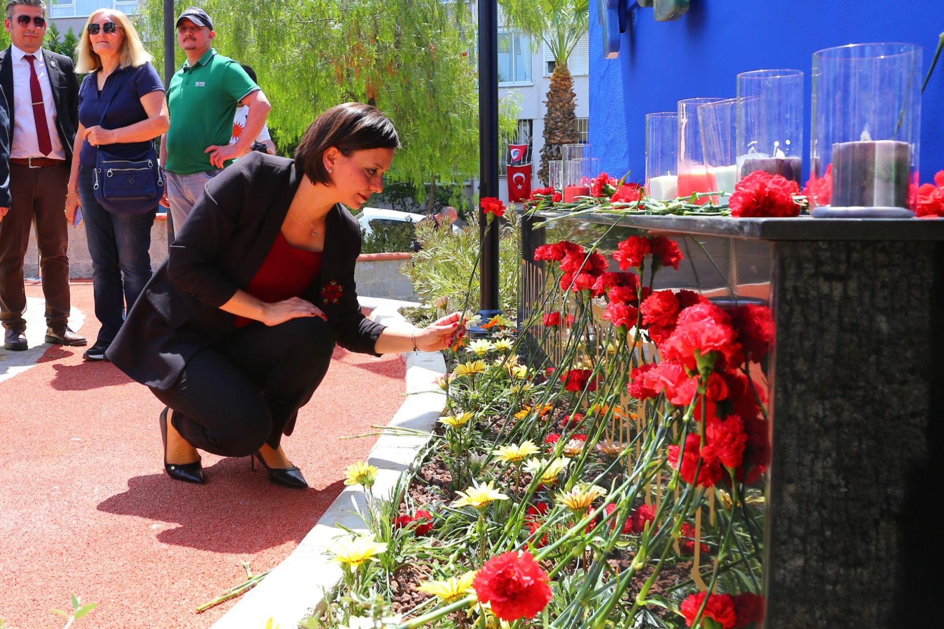 Törenin sonunda heykeltıraş Turgut Kahraman tarafından yapılan Üç Fidan Anıtı’na karanfiller bırakıldı.