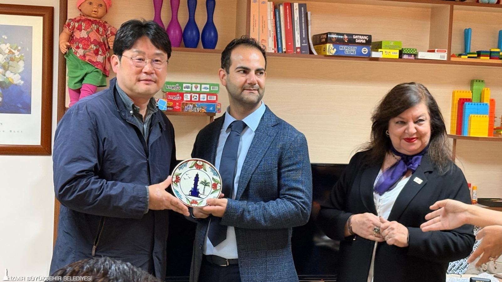 Sağlık İşleri Dairesi Başkanlığı Sağlıklı Yaşam Şube Müdürü Dr. Ferhat Yıldız ve merkez sorumlusu Tülay Hepoğlu’nun da yer aldığı ziyarette Güney Koreli heyete İzmir’in simgelerinin yer aldığı hediyeler ve İzmir İleri Yaş Eylem Planı kitapçığı takdim edildi.